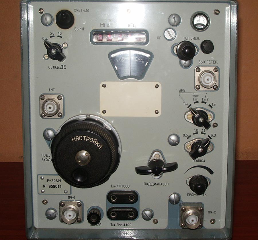 Армейский радиоприёмник *Р-326М* (Шорох-М) выпускался с 1986 года. Радиоприёмник - супергетеродин с двойным преобразованием частоты, предназначен для слухового приёма телефонных и телеграфных сигналов с амплитудной модуляцией в диапазоне от 1,5 до 32,0 МГц (семь поддиапазонов). Элементная база: тpанзистоpы и микросхемы. Виды принимаемых сигналов AM, CW, SSB. Отображение частоты на светодиодах (дискpетность 1 КГц). Чувствительность 0,8 мкВ (CW, SSB); 4 мкВ (AM). Питание от аккумулятора 12 В; КНП-3,5А (10 шт), бортовой сети 27 В через преобразователь ПК-12, сети переменного тока через сетевой блок питания ВС-12. Мощность потpебляемая от аккумуляторной батареи 10/5 Вт (пpи включенной и выключенной шкале). Габариты и вес 235х295х395 мм; 20 кг.