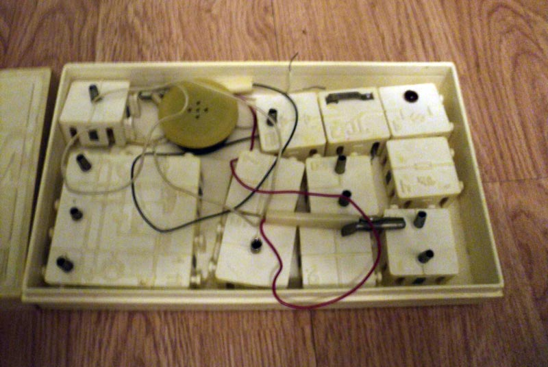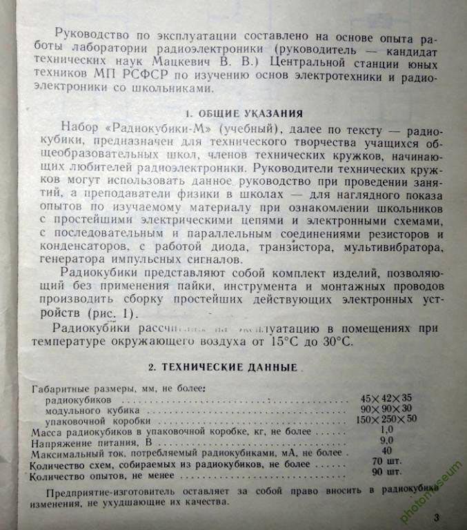 Набор *Радиокубики-М* выпускался предположительно с 1986 года. С помощью набора можно собрать несколько действующих электронных устройств, соединяя кубики между собой по приведённым в инструкции по эксплуатации схемам и рисункам.