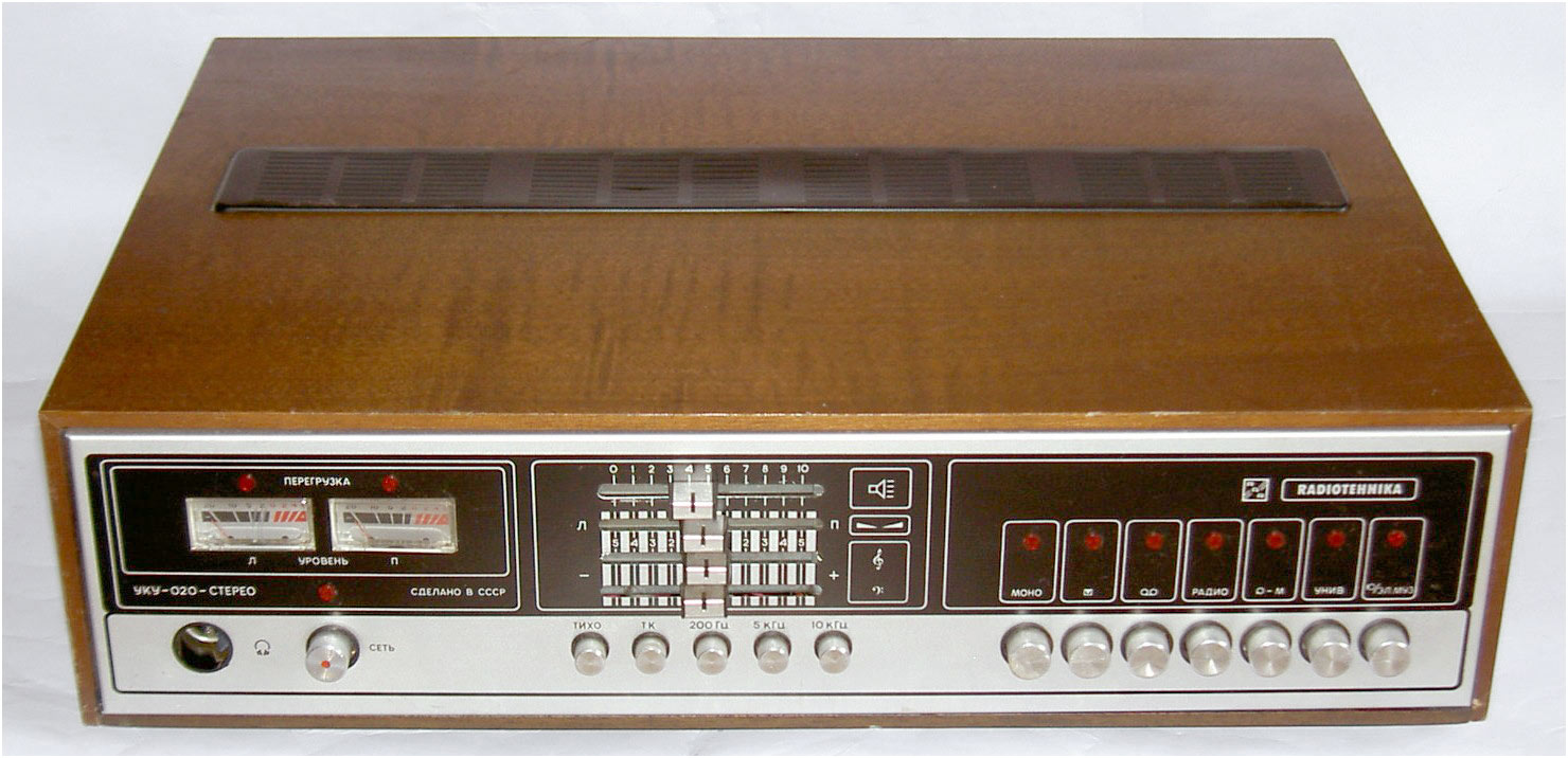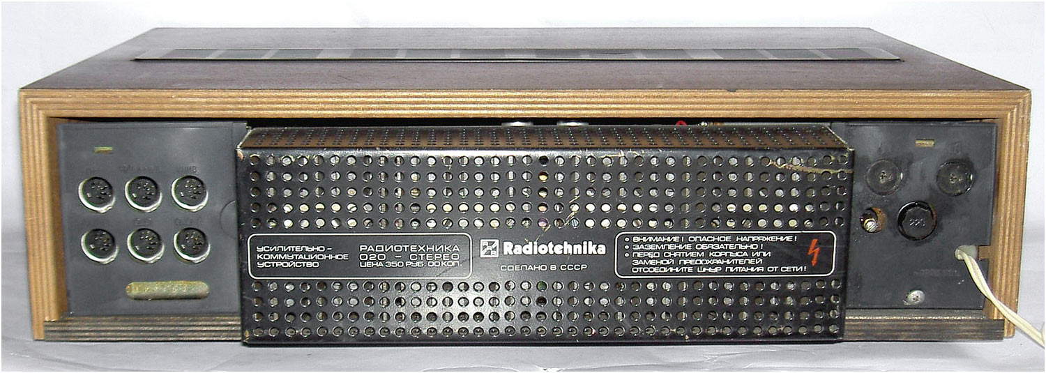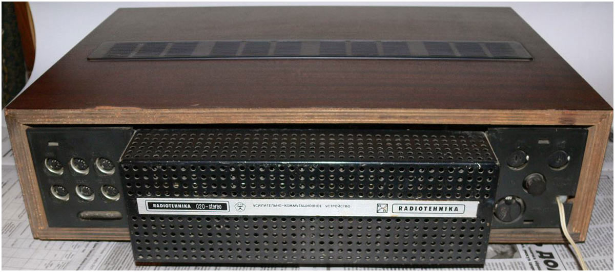 Усилительно-коммутационное устройство *Радиотехника-020-стерео* с 1977 года выпускал Рижский радиозавод им. Попова. Предназначено для высококачественного усиления звуковых программ. Есть гнёзда для микрофона, ЭПУ с магнитным звукоснимателем, ЭМИ, приёмника, ЭПУ с пьезокерамическим или магнитным звукоснимателем, телевизора, магнитофона. Гнёзда для АС, стереотелефонов, магнитофона для сквозного контроля. Номинальная выходная мощность - 2х50 Вт. Потребляемая мощность 160 Вт. Габариты УКУ - 480х410x140 мм. Вес 12 кг.