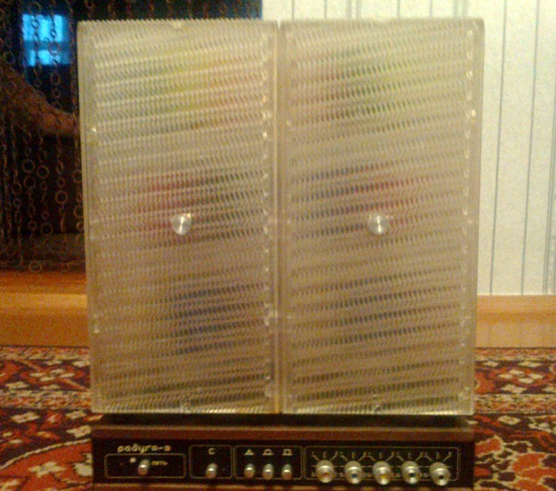 Установка цветомузыкальная *Радуга-3* выпускалась с 1986 года Гомельским заводом радиотехнологического оснащения. Установка *Радуга-3* предназначена для сопровождения музыкальных произведений красочными цвето и световыми эффектами. Количество основных каналов - 4. Количество каналов подсветки - 1. Максимальная потребляемая мощность - 500 Вт. Габариты блока управления - 400х200х70 мм. Габариты одной световой колонки - 203х203х423 мм. Вес блока управления - 3,2 кг. Вес световой колонки - 4,5 кг. Подробнее о ЦМУ в приведённой документации.