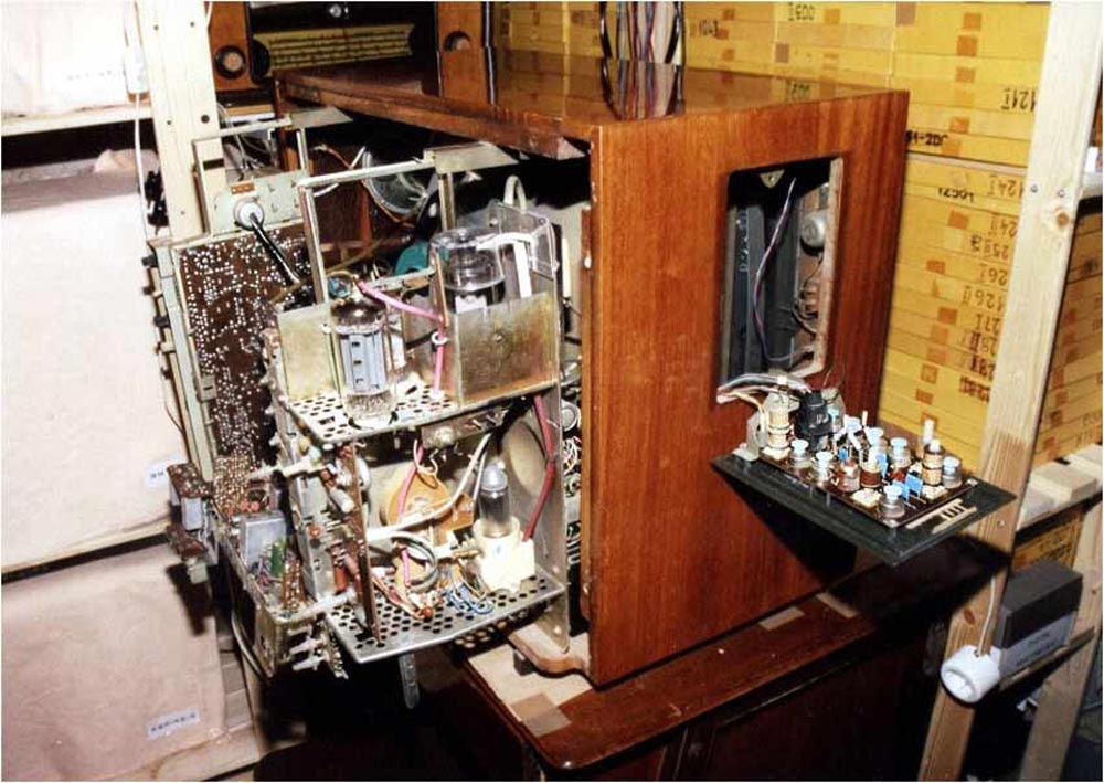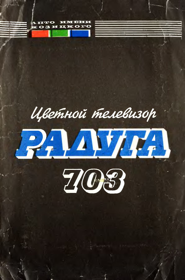 Телевизионный приёмник цветного изображения *Радуга-703/Д* с 1973 года выпускал Ленинградский завод им. Козицкого. Унифицированный телевизор цветного изображения **Радуга-703/Д** (тип УЛПЦИ-59-II-1) выпускался в настольном исполнении с различными вариантами отделки передней панели. Он обеспечивает приём цветных и чёрно-белых передач на любом из 12 каналов МВ диапазона а телевизор с индексом *Д* и на любом канале ДМВ диапазона. Телевизор выполнен на базе модели **Радуга-701** с кинескопом 59ЛКЗЦ. Акустическая система состоит из одного громкоговорителя 4ГД-7 и двух 1ГД-36. Номинальная выходная мощность 1,5 Вт. Органы управления размещены на лицевой панели. В модели имеются АРУ, АПЧГ, ФПЧ и Ф, автоподдержание размеров изображения при колебаниях напряжения и авто-размагничивание экрана и маски кинескопа при включении. Для повышения качества воспроизведения мелких деталей при приёме чёрно-белого изображения введено автоматическое устройство распознавания цвета. Имеется возможность подключения магнитофона для записи звука передач, прослушивания его на головных телефонах а также подключения внешнего видеосигнала от сервисных приборов и видеомагнитофона. Имеется возможность установки разъёмов для подключения ПДУ. Телевизор собран из функционально законченных блоков. Блоки могут выдвигаться и откидываться что позволяет проводить проверки при ремонте без их отключения. Габариты телевизора 560х545х780 мм, масса 60 кг. Телевизор **Радуга-704/Д** выпускаемый с начала 1976 года, аналогичен описанному выше, за исключением замены на панели угловых регуляторов на ползунковые.