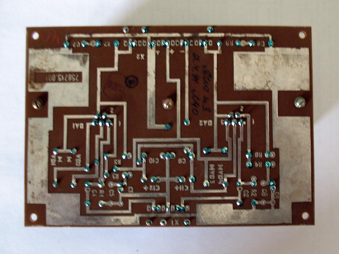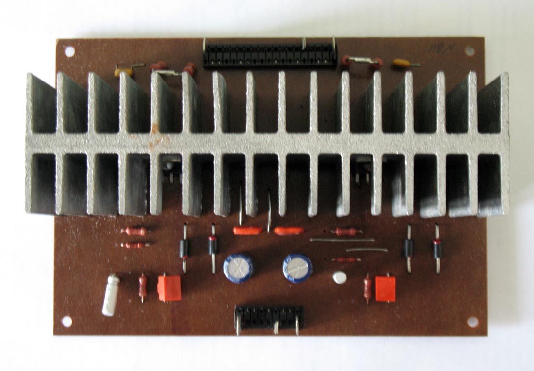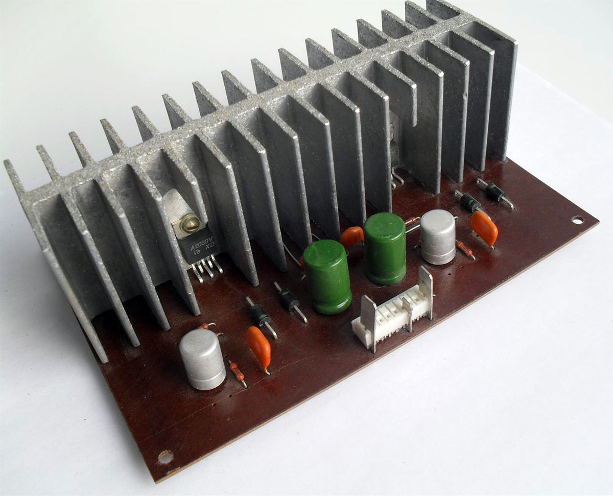 Радиоконструктор *Рапри УМ-1* (Усилитель мощности) выпускался с 1991 года. Стереофонический усилитель мощности с номинальной выходной мощностью 2х10 Вт собиран на аналоговых микросхемах A2030V. На плате размещены: теплоотводящий радиатор с площадью теплоотводящей поверхности 750 кв.см; радиоэлементы; разъёмы для подключения источника сигнала, питающих напряжений и нагрузок. A2030V - это усилитель большой мощности, охваченный отрицательной обратной связью, имеющий защиту от короткого замыкания нагрузки, диапазоном питающих напряжений от +6 В до ±18 В. При максимальном напряжении она способна отдать в нагрузку 4 Ома до 20 Вт. Микросхемы ставятся на общем радиаторе. Минимальная ЭДС источника сигнала 0,7 В. Входное сопротивление 22 кОм. Номинальная (максимальная) выходная мощность при напряжении источника тока ±15 В - 10 (15) Вт. Полоса воспроизводимых звуковых частот - 20...20000 Гц. Общие искажения 0,05%. Габариты УМ - 156х108х52 мм. Цена УМ - 30 рублей. УМ поставлялся собранным, для сборки совместно с предусилителем (тоже РК) полного усилителя ЗЧ.