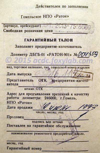 Дозиметр *Ратон-901* (ДБГБ-01) выпускался с 1990 года. Предназначен для измерения мощности полевой дозы фотонного и ионизирующего излучения. Дозиметр индивидуального или коллективного использования населением для контроля радиационной обстановки в жилых и рабочих помещениях и на местности и как индикатор загрязненности продуктов питания.