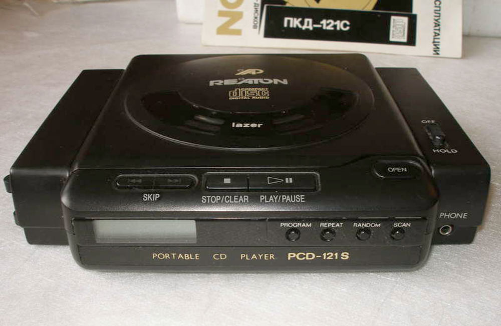 Портативный проигрыватель компакт-дисков *Реатон ПКД-121С* (Reaton PCD-121S) в 1994 году малосерийно выпустило Томское ОАО *Реатон*. ПКД собран из блоков и узлов фирмы *Mitsumi*, из нашего в ПКД были блок питания, телефонный усилитель и корпус. Дизайн передней панели скопирован с ПКД *JVC XL-P50*.