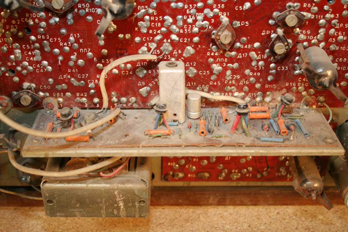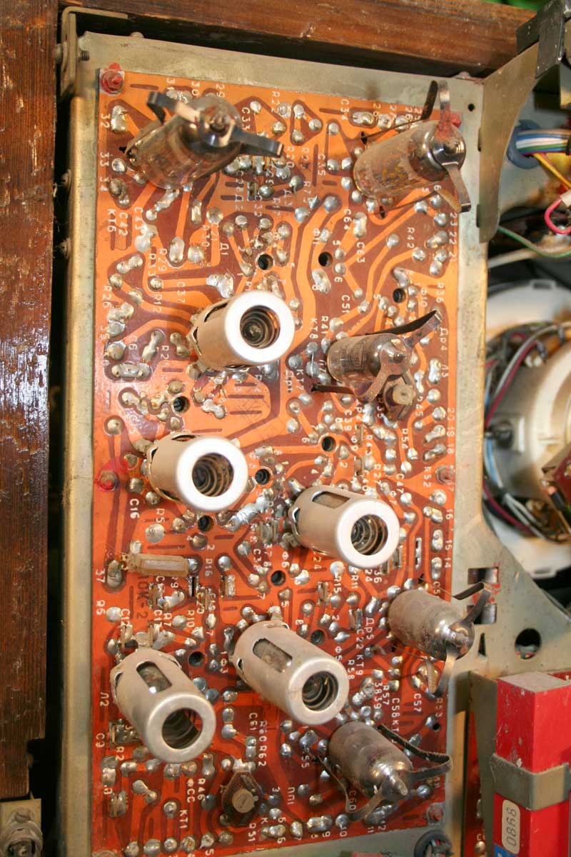 Телевизионный приёмник цветного изображения *Рекорд-101* с 1968 года малой серией начал выпускать Александровский радиозавод. Цветной телевизор **Рекорд-101** (ЦТ-40) предназначен для приёма цветных и ч/б программ в любом из 12-ти каналов МВ диапазона. В модели применён кинескоп типа 40ЛК2Ц с углом отклонения лучей 70 градусов. Телевизор собран на 29 радиолампах без применения транзисторов. Конструкция изначально оказалась не совсем удачная. При потребляемой от электрической сети мощности в 360 Вт, телевизор выделял много тепла и имел весьма большой корпус, сравнимый с моделями на кинескопах 59 см по диагонали. Выступающая горловина кинескопа имела размер 30 см, что было не особо удобно при транспортировке и эксплуатации. Кинескоп уже через пару месяцев терял некоторые цветовые свойства, а то и вовсе выходил из строя. Телевизор **Рекорд-101** был несколько дешевле остальных телевизоров, чем и привлекал покупателей. Уже к 1970 году в основном из-за неперспективности и множеством технических проблем телевизор был снят с производства и заменён на усовершенствованный цветной телевизор **Рекорд-102**. Первоначально новый телевизор был разработан с одним оформлением, но в серию пошёл телевизор с оформлением как у базовой модели. В модернизированном цветном телевизоре **Рекорд-102** был применён такой же по диагонали, но более совершенный кинескоп 40ЛК4Ц, с углом отклонения луча 90 градусов, 21 радиолампа и 15 транзисторов. По сравнению с предыдущим телевизором в новой модели были значительно уменьшены габариты, масса и потребляемая от электрической сети мощность. Были устранены практически все недостатки предыдущей модели а также введены некоторые новшества.