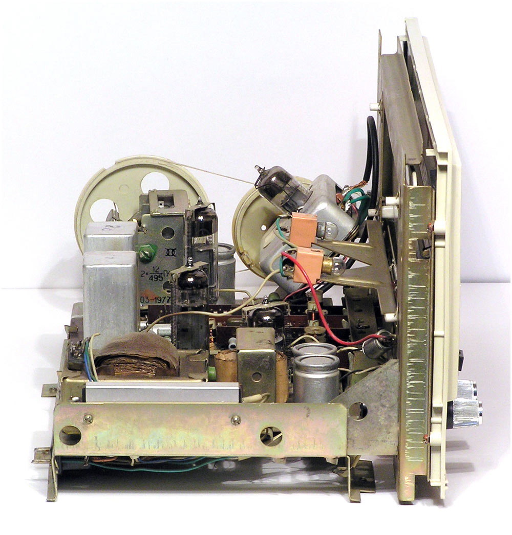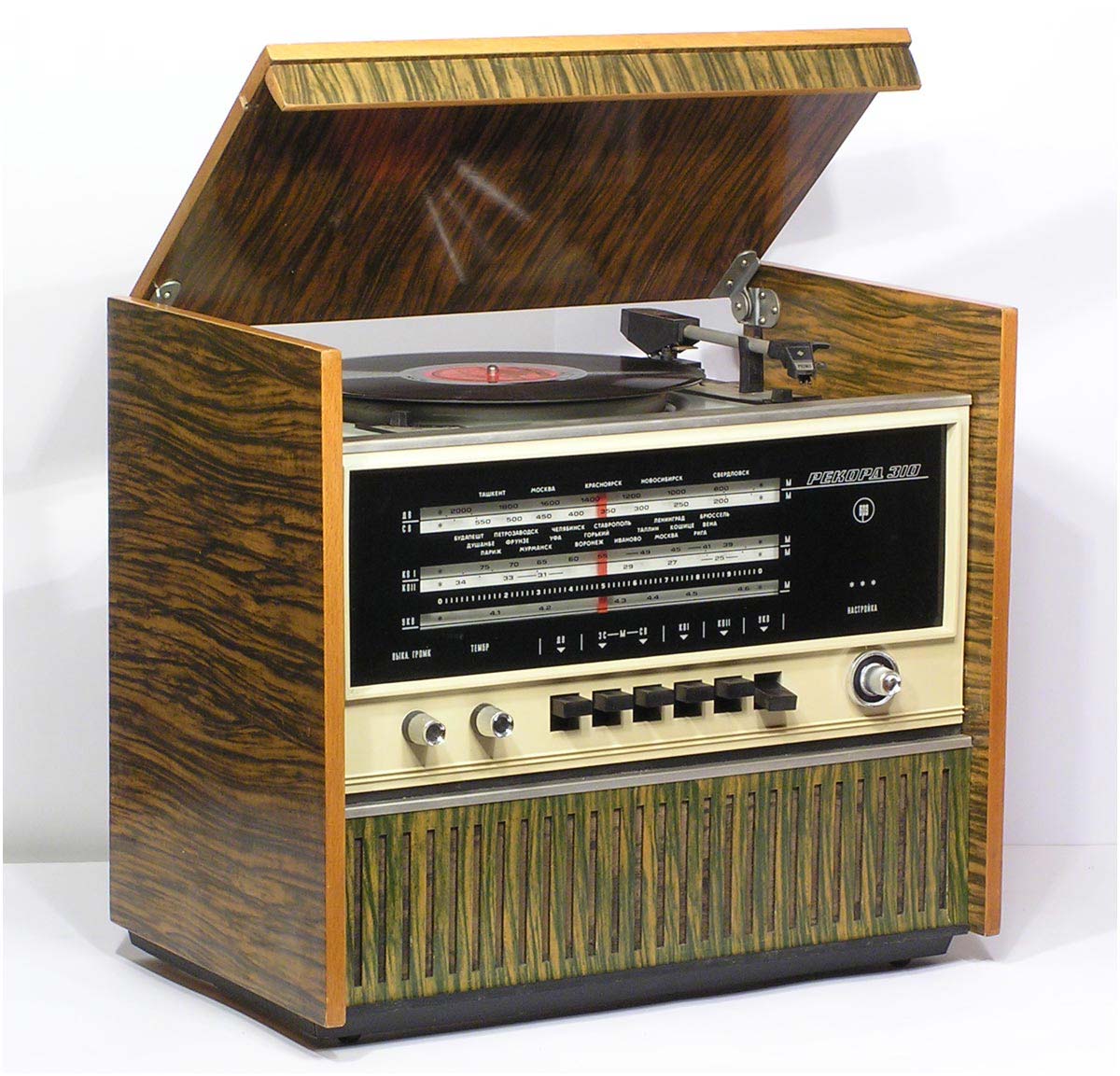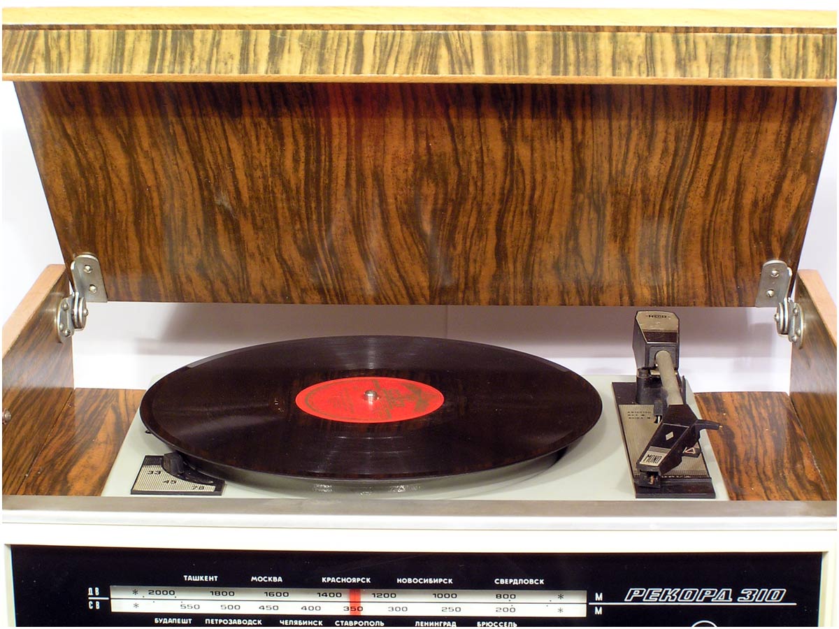 Сетевая унифицированная ламповая радиола третьего класса *Рекорд-310* с 1971 года выпускалась Бердским радиозаводом. Радиола состоит из приёмника 3-го класса и универсального трёхскоростного ЭПУ 2-го или 3-го класса, позволяющего воспроизводить записи с грампластинок любых форматов, со скоростью вращения диска: 33, 45 и 78 об/мин. Приёмник рассчитан на приём радиовещательных станций в диапазонах: ДВ, СВ, двух поддиапазонах КВ: KB1 - 75,9...40,0 м, КВ2 - 32...24,8 м и УКВ-ЧМ 4,54..4,11 м. Чувствительность в диапазонах ДВ, СВ - 200 мкВ, в 2-х поддиапазонах КВ - 300 мкВ, в диапазоне УКВ-ЧМ - 30 мкВ. Избирательность по соседнему каналу в диапазонах АМ 26 дБ. Номинальная выходная мощность усилителя низкой частоты 0,5 Вт, максимальная 1 Вт. Полоса воспроизводимых частот в тракте AM - 125...3500 Гц, тракте ЧМ и при прослушивании грамзаписи 125...7100 Гц. Питание радиолы осуществляется от сети переменного тока. Потребляемая мощность 60 Вт при приёме и 75 Вт при работе ЭПУ. Размеры радиолы 450х392х400 мм. Масса 12,5 кг.