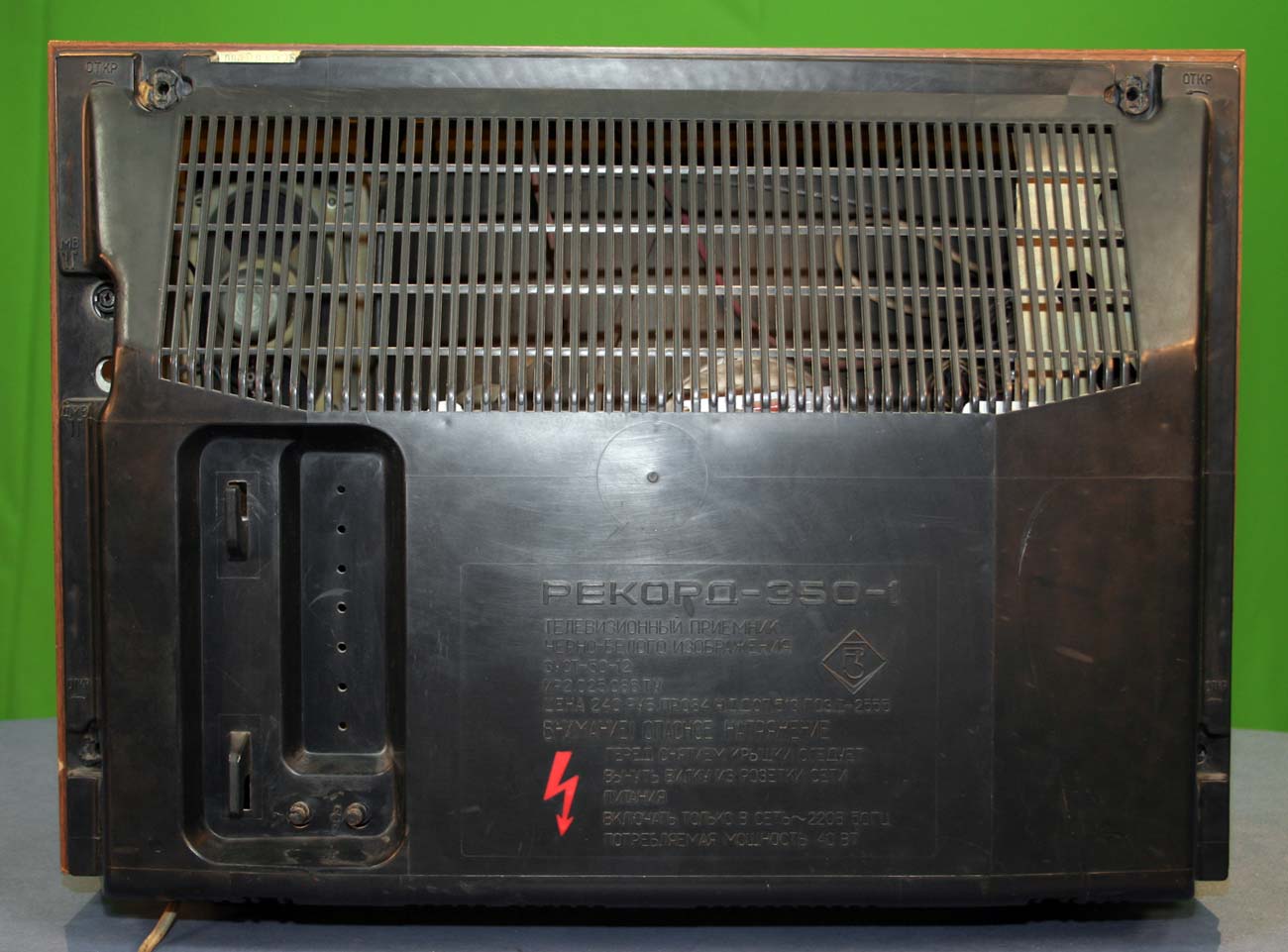 Телевизионный приёмник чёрно-белого изображения *Рекорд-350/Д* с 1987 года выпускал Александровский радиозавод. Телевизор **Рекорд-350** (3УСТ-50-3/4) это унифицированный стационарный полупроводниковый, с применением интегральных микросхем телевизионный приёмник чёрно-белого изображения блочно-модульной конструкции. Телевизор имеет набор сервисных удобств предусмотренных для таких моделей. Кинескоп 50ЛК2Б с углом отклонения лучей 110°. Переключатель каналов барабанный. БП бестрансформаторный и позволяет эксплуатировать телевизор без дополнительной стабилизации напряжения сети. Приём телепередач осуществляется в диапазоне метровых волн. Телевизор, в названии которых после цифрового обозначения имеется индекс **Д**, осуществляют приём передач в диапазонах метровых и дециметровых волн. Имеются гнёзда для подключения магнитофона, головных телефонов. Корпус выполнен из фанеры и облицован текстурной бумагой или пленкой с лаковым покрытием поверхности. Потребляемая телевизором мощность 40 Вт. Масса 20 кг. С 1988 года завод выпускал телевизор *Рекорд-350-1/Д1* (3УСТ-50-12/13) по конструкции и оформлению, кроме изменения номера в унификации не отличавшийся от описанного.