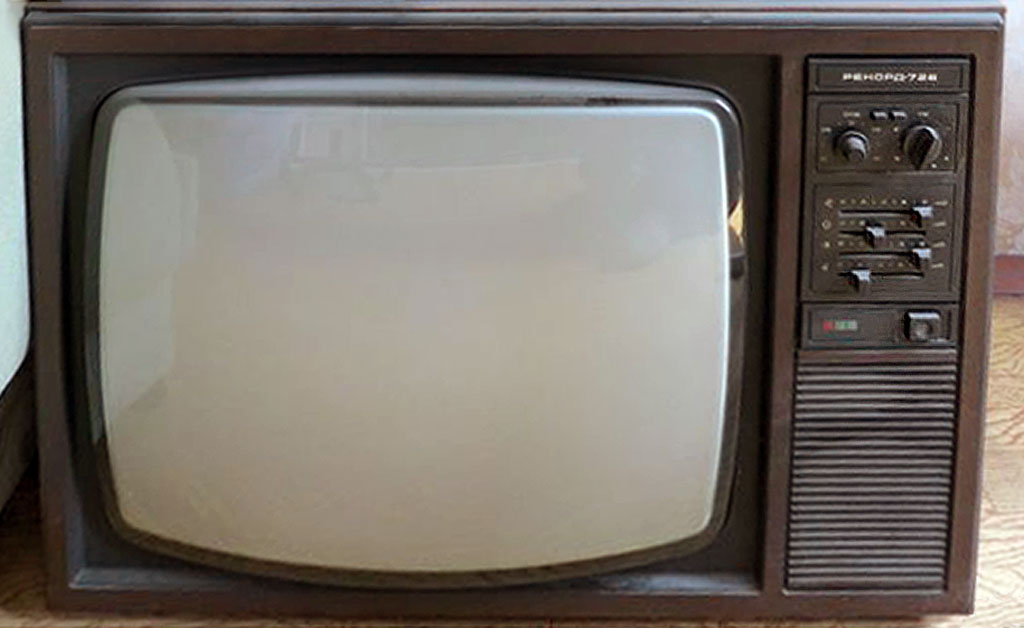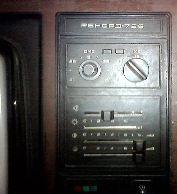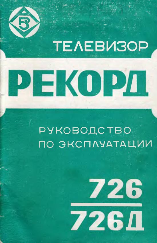 Телевизионный приёмник цветного изображения *Рекорд-726/Д* с 1982 года выпускал Александровский радиозавод. Телевизор *Рекорд-726/Д* унифицированный лампово-полупроводниковый цветной телевизор работающий в МВ и ДМВ диапазонах (с индексом *Д*). Размер изображения 362х482 мм. Чувствительность в МВ диапазоне 80 мкВ, ДМВ - 140 мкВ. Разрешающая способность 450 линий. Номинальная выходная мощность 2,3 Вт. Диапазон воспроизводимых частот 80...12500 Гц. Потребляемая от сети мощность 250 Вт. Размеры телевизора 550х800х550 мм. Вес 60 кг.