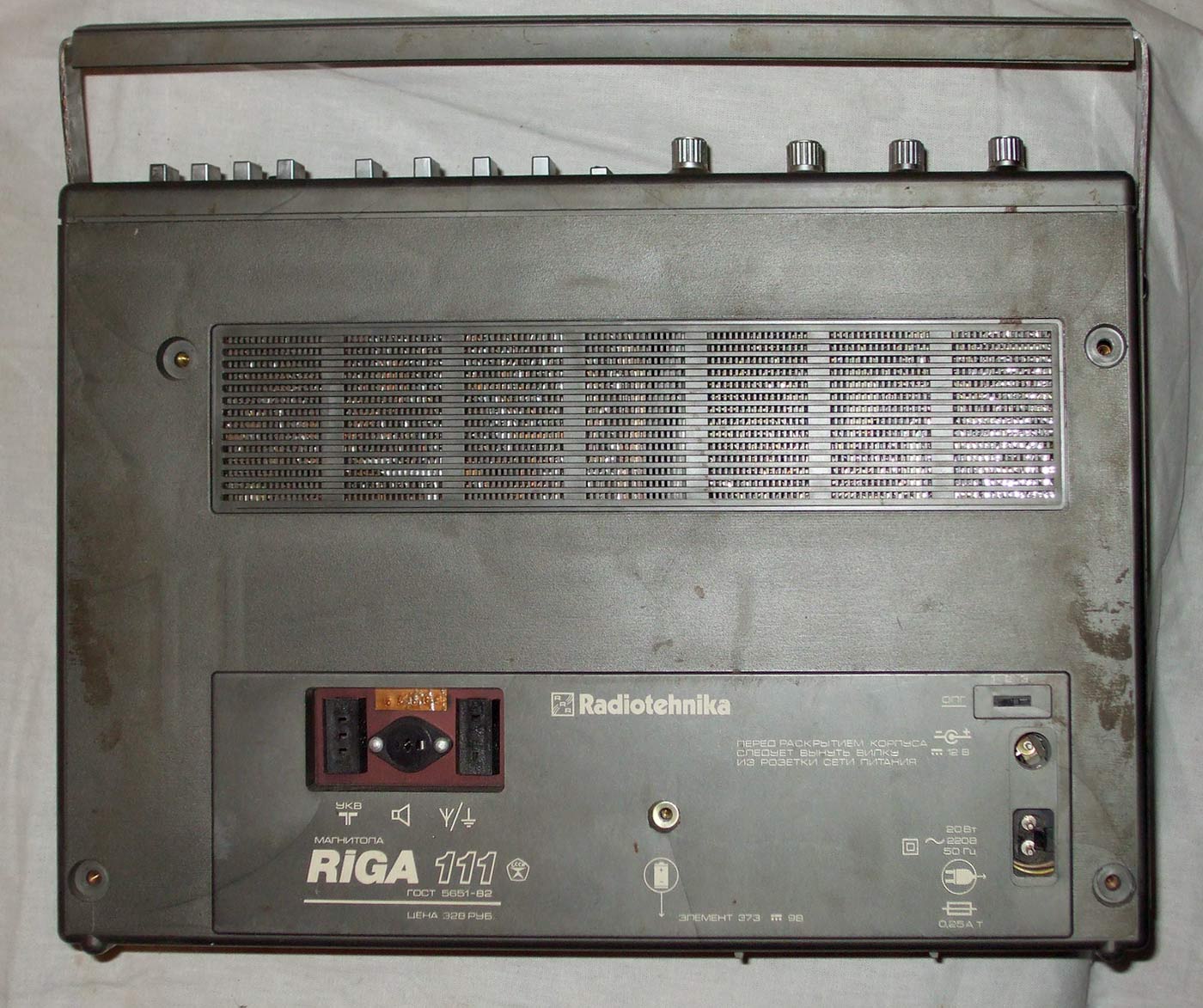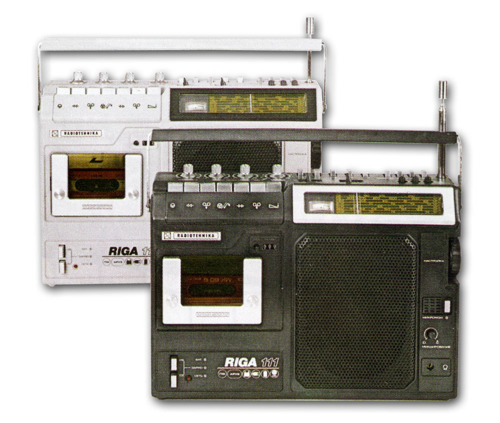 Переносная кассетная магнитола *Рига-111* с 1984 года выпускалась Рижским радиозаводом им. Попова. Магнитола является обновлением модели *Рига-110* и состоит из приёмника, работающегой в диапазонах ДВ, СВ, КВ-1...КВ-4, УКВ и кассетного магнитофона. Конструкцией предусмотрены: 3 фиксированные настройки в диапазонах ДВ, СВ и УКВ. АПЧ в УКВ-ЧМ диапазоне, электретный микрофон, АРУЗ, стрелочный индикатор настройки, уровня записи и питания, автостоп по окончании кассеты, возможность подключения АС и головных телефонов. Питается магнитола от сети или 6 элементов 373. Чувствительность в диапазонах: ДВ - 2 мВ/м, СВ - 1,5 мВ/м, КВ - 0,35 мв/м, УКВ - 100 мкВ. Диапазон частот в АМ тракте 200...3550 Гц, ЧМ 125...12500 Гц, магнитной записи на ЛВ - 63...10000 Гц. Номинальная выходная мощность 1 Вт. Габариты модели 386х280х120 мм, вес 6,5 кг.