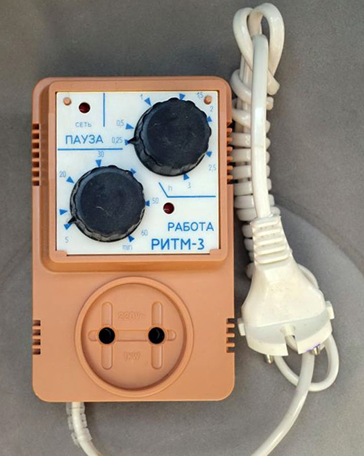 Реле времени циклическое *Ритм-3* выпускалось предположительно с 1992 года Киевским научно-производственным объединением реле и автоматики.