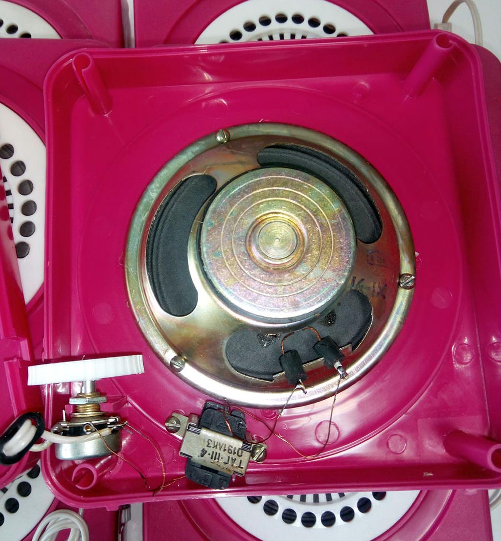 Абонентский громкоговоритель "Ритм-304" с 1988 года выпускало Гомельское ПО пластмассовых изделий. АГ предназначен для воспроизведения программ местного проводного вещания. Устанавливается на горизонтальную плоскость или подвешивается на стену. Группа сложности 3 (ГОСТ 5961-89). Номинальное напряжение, В 30 (15). Рабочий диапазон частот звука 160...10000 Гц при неравномерности АЧХ звукового давления 15 дБ. Диапазон регулирования громкости 35 дБ. Среднее звуковое давление 0,25 Па. Модуль входного сопротивления 5000 Ом. Коэффициент искажений 2...5%. Наработка на отказ 17000 ч. Габариты 193х191,5x65 мм. Масса 1 кг. Корпус АГ состоит из двух деталей и декоративной лицевой решётки из ударопрочного полистирола. Громкоговоритель 0,5ГД-42. Трансформатор ТАГ-Ш-4 и резистор СПЗ-30а-68 кОм, являющийся регулятором громкости, выведенным на стенку АГ. Громкоговоритель выпускали в очень широкой цветовой гамме с одинаковым или белым цветом декоративной решётки.