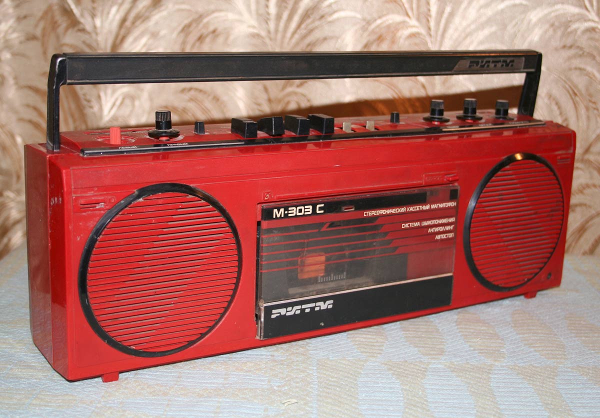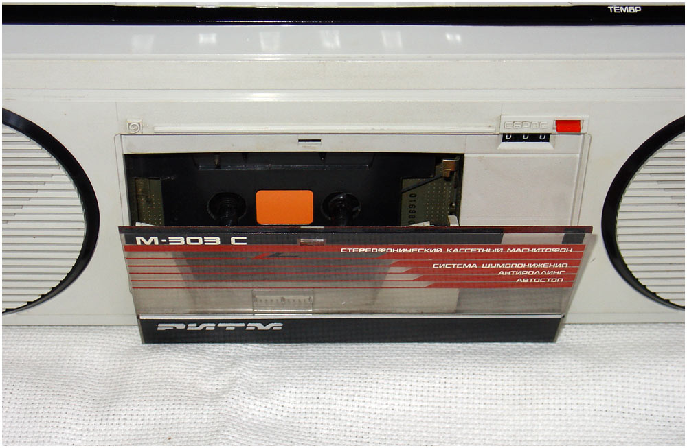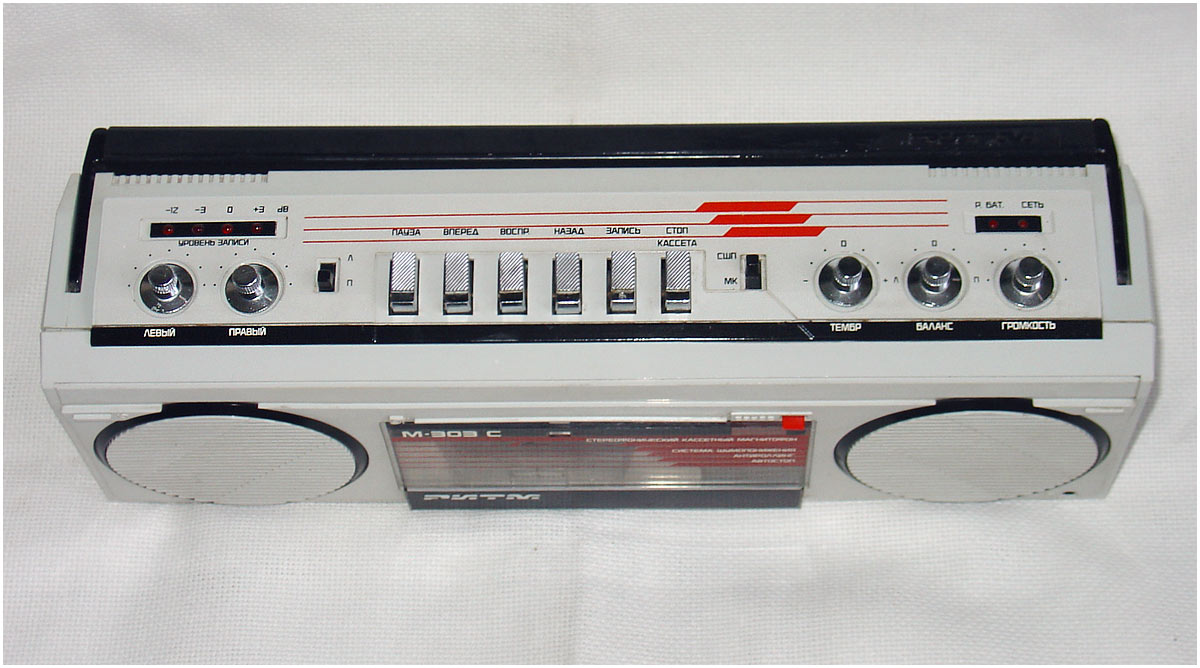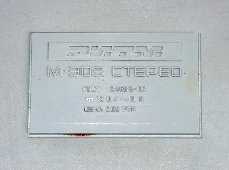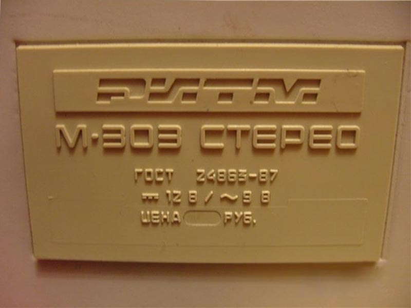 Стереофонический кассетный магнитофон *Ритм М-303С* с I-кв 1988 года выпускал Пермский электроприборный завод. Предназначен для записи моно или стереофонических фонограмм на магнитную ленту МЭК-1 в кассетах МК, их воспроизведение громкоговорителями и имеет следующие возможности: автоматический стоп при окончании ленты с отключением питания; возможность подключения стереофонических телефонов; отключаемую систему шумопонижения; световую индикацию уровня записи; разряда батарей; внешнего питания; регулировка тембра ВЧ, уровня записи, баланса; электретный микрофон; временный останов ленты; контроль расхода ленты. Рабочий диапазон частот на ЛВ 63...12500 Гц. Детонация 0,3%. Взвешенное отношение сигнал/шум -54 дБ. Номинальная выходная мощность 2х1, максимальная 2х2 Вт. Потребляемая мощность 12 Вт. Габариты магнитофона 410х135х95 мм. Масса без БП, батарей и кассеты - 2,5 кг. Сначала завод выпускал магнитофоны с транзисторами в УМ, более поздние на микросхемах К174УН7. Помимо этого, в них была введена АРУЗ и убраны регуляторы уровней записи. Система шумопонижения также была упразднена. Впрочем были и комбинированные варианты.
