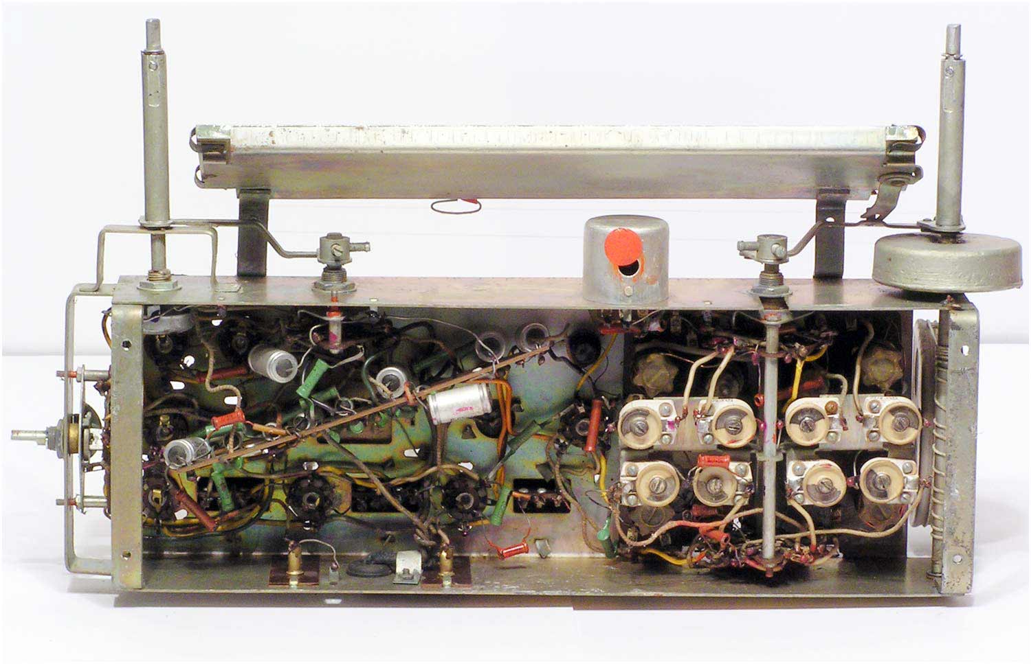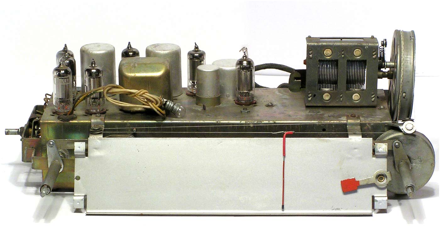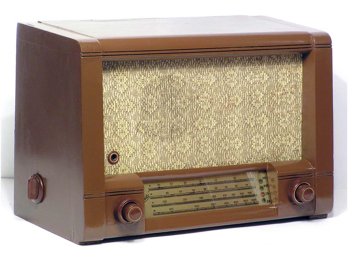 Радиоприёмник батарейный *Родина-52* с 1952 года выпускал Челябинский радиозавод и Воронежский завод *Электросигнал*. Приёмник разработан в 1951 году конструкторским бюро Воронежского завода **Электросигнал**. Приёмник заменил модель **Родина-47** и стал первым в СССР супергетеродинным приёмником 2-го класса на пальчиковых лампах. При высокой чувствительности и избирательности, он отличается экономичностью. Кроме того, в схеме имеется устройство, позволяющее уменьшать расход энергии, когда не требуется работа с большой громкостью. На передней панели, справа находится сдвоенная ручка: большая служит для переключения диапазонов, малая для настройки. Сдвоенная ручка слева выполняет несколько функций: большая - выключатель питания и регулятор тона, малая регулятор громкости. Регулятор тона имеет положения: **Выключено**, **Широкая** и **Узкая полоса**. В положении **Узкая полоса** срезаются высокие частоты. На левой боковой стенке находится переключатель рода работы на три положения: для работы в экономичном режиме **ММ** (Малая мощность), в нормальном режиме **БМ** (Большая мощность) и для работы от звукоснимателя **ЗС**. Сзади находятся гнёзда антенны и заземления, звукоснимателя и добавочного громкоговорителя. С помощью этого же разьёма приёмник может быть включен в трансляционную сеть. Для подключения батарей приёмник снабжен шнуром с колодками. Кроме того в комплекте имеется переходная колодка, которая позволяет использовать обычные батареи накала и анода. Радиоприёмники **Родина-52** начиная с 1954 года работали на батареях от приёмников **Искра-53**. Приёмник имеет 4 диапазона: ДВ 200...723 м, СВ 577...167 м, КВ1 76...36 м и КВ2 36...24,8 м.Чувствительность на ДВ, СВ 200 мкВ, КВ 300 мкВ. Избирательность по соседнему каналу 26 дБ. Избирательность по зеркальному каналу на ДВ 36 дБ, СВ 30 дБ, КВ 12 дБ. Диапазон воспроизводимых звуковых частот 100...4000 Гц. ПЧ 465 КГц. Индикатором включения служит неоновая лампа, расположенная слева над регулятором громкости. Расход тока по накалу 520 мА в обычном и 400 мА в экономичном режиме. Потребляемый ток в режиме **ММ** при выходной мощности 100 мВт - 8,5 мА, в режиме **БМ** при мощности 300 мВт - 12 мА. При работе звукоснимателя выключается накал ламп приёмной части, а выходной каскад работает в режиме **БМ**. В приёмнике установлен громкоговоритель 3ГД-3 (позднее 0,5ГД-5) с постоянным магнитом. Габариты приёмника 450х310х225 мм. Вес 12,5 кг. Радиоприёмник **Родина-52** выпускался до середины 1960 года, претерпев за это время несколько модернизаций схемы и внешнего вида.