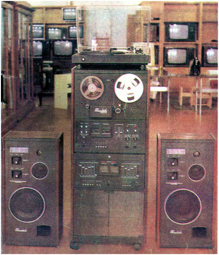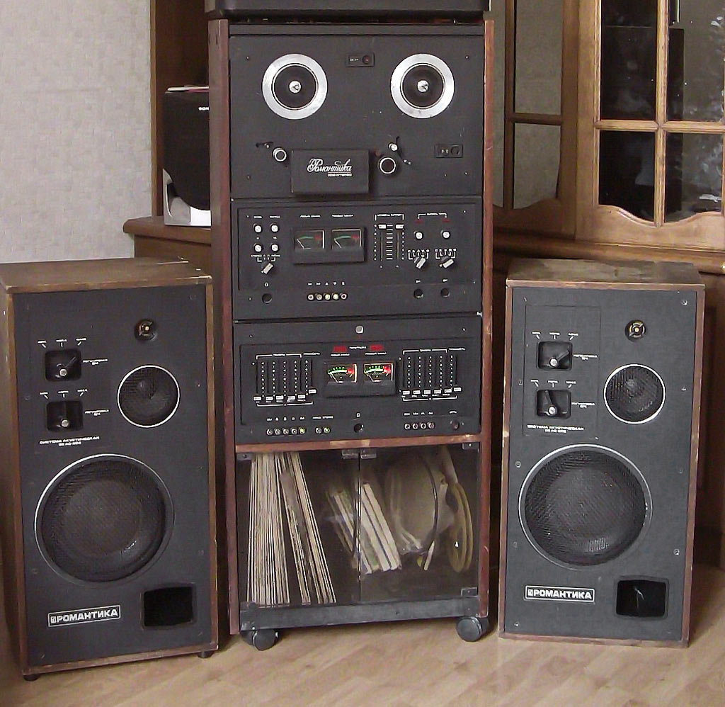 Стерефонический комплекс *Романтика-002-стерео* с 1980 года выпускал Харьковский ПСЗ имени Шевченко. СК высшего класса **Романтика-002-стерео** предназначен для воспроизведения записи с грампластинок, а так же для магнитной записи и последующего воспроизведения речевых и музыкальных программ. В СК используется ЭПУ высшего класса 0-ЭПУ-85С с магнитной головкой ГЗМ-003. В ЭПУ имеется цифровая индикация частоты вращения диска и её подстройка. Магнитофон-приставка высшего класса комплекса выполнен на базе двухскоростного ЛПМ. В нём предусмотрена раздельная для каждого канала регулировка уровня записи с контролем по стрелочным индикаторам, автоматическая остановка ЛПМ в случае обрыва и окончания ленты, блокировка кнопки **запись**. Магнитофон позволяет делать синхронную запись на две дорожки и переписывать фонограммы с одной дорожки на другую. В усилителе применена пятиполосная регулировка тембра. Работает он на трёхполосные АС - 35АС-202, возможно прослушивание программ через стереотелефоны. Комплекс снабжён ультразвуковым ПДУ, позволяющим регулировать громкость, переключать все входы, включать и выключать магнитофон в режиме рабочего хода и перемотки ленты на расстоянии до 8 метров. ПДУ имеет малые габариты и питание от элемента типа 332. Номинальная выходная мощность 2х25 Вт. Диапазон воспроизводимых частот тракта ЭПУ - 20...20000 Гц, магнитнофона на скорости 19,05 см/с - 31,5...20000 Гц, 9,53 см/с - 31,5...16000 Гц. Мощность, потребляемая от сети 300 Вт. Габариты стойки с магнитофоном и усилителем - 1200х500х400 мм, ЭПУ - 160х500х370 мм, одной АС - 720х315х285 мм, пульта ДУ - 160х75х40 мм. Масса блока магнитофона с усилителем 70 кг, ЭПУ -15 кг, одной АС - 26 кг, пульта ДУ - 0,25 кг. Цена комплекса 2700 рублей.