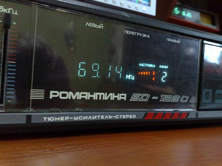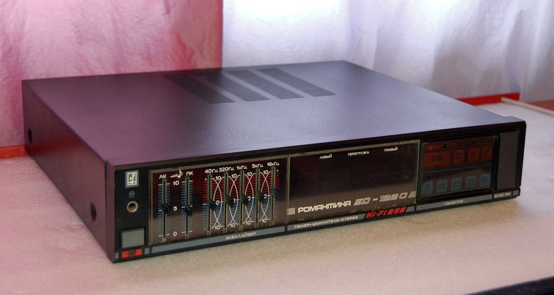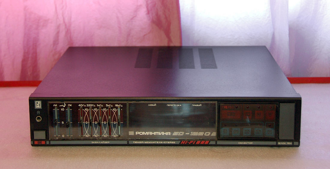 Тюнер-усилитель *Романтика 50РУ-122С* выпускался с 1991 года Харьковским ПСЗ имени Т.Г.Шевченко. Тюнер-усилитель с псевдосенсорным управлением 1-й группы сложности предназначен для приёма и усиления монофонических и стереофонических программ в диапазоне УКВ, высококачественного усиления стереофонических музыкальных фонограмм от различных источников с возможностью повышения качества фонограммы с помощью эквалайзера. Технические характеристики: Тюнер: Диапазон принимаемых частот 65,8...74,0 мГц. Чувствительность при соотношении сигнал/шум 36 дБ не хуже 3 мкВ. Избирательность по зеркальному каналу 50 дБ. Разделение стереоканалов на частоте 1000 Гц не менее 30 дБ. Диапазон воспроизводимых частот по электрическому напряжению 31,5...18000 Гц. Усилитель: Номинальная выходная мощность при нагрузке 8 Ом - 2х25 Вт. Диапазон эффективно воспроизводимых частот 20...20000 Гц. Коэффициент гармоник на частоте 1000 Гц не более 0,4 %. Максимальная выходная мощность 2х35 Вт.