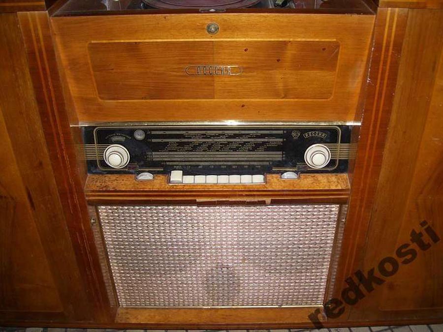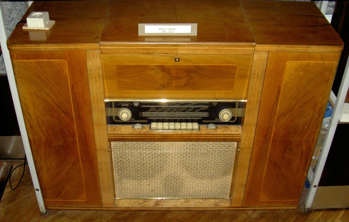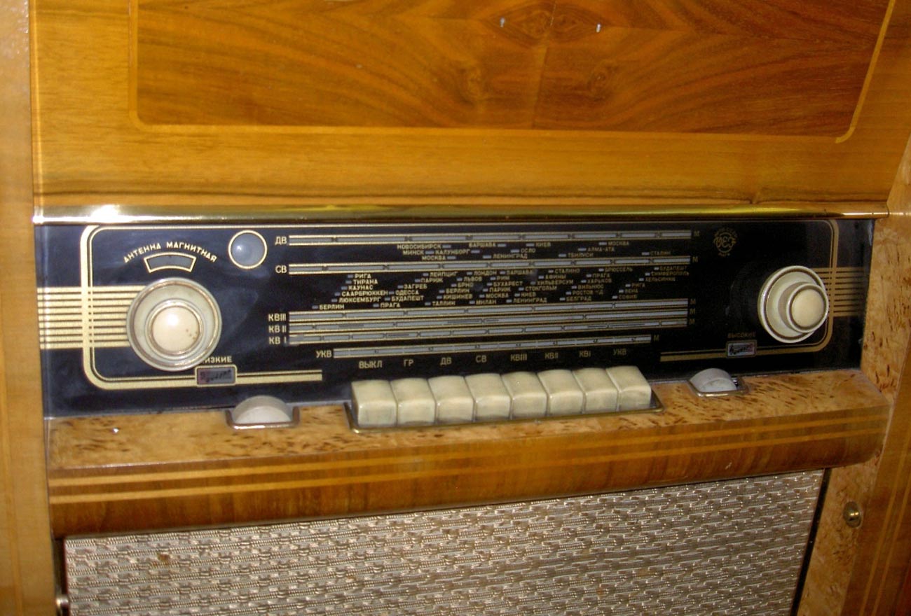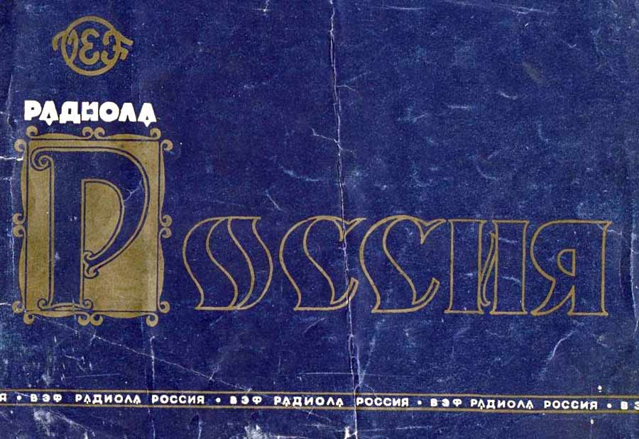 Радиола сетевая ламповая *Россия* с осени 1956 года выпускалась на Рижском государственном электротехническом заводе *ВЭФ*. Всеволновая радиола высшего класса **Россия** - создана на базе радиолы **Люкс** и по своей электрической схеме и конструкции, кроме футляра аналогична ей. В акустической системе радиолы применены 2 фронтальных громкоговорителя типа 5ГД-10, один фронтальный и два боковых типа 1ГД-9. Диапазон воспроизводимых звуковых частот при проигрывании пластинок и приёме в ЧМ диапазоне 40...15000 Гц. Максимальная выходная мощность УНЧ 16 Вт. Потребляемая мощность от электросети 220 вольт при приёме 100 Вт, при работе ЭПУ - 120 Вт. Габариты модели 1150х850х405 мм. Масса 66 кг.