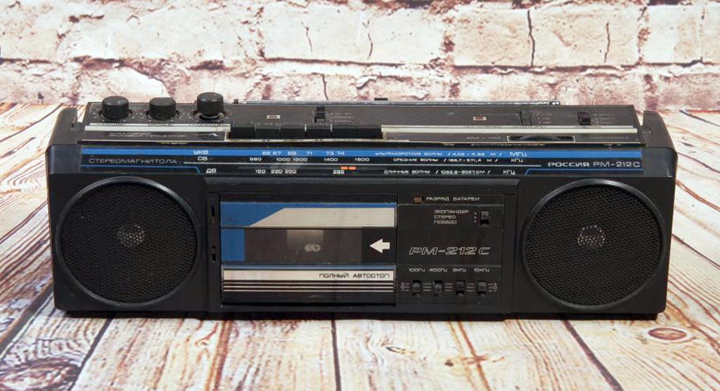 Стереофоническая кассетная магнитола *Россия РМ-212С* с 1987 года выпускалась ОАО Челябинский радиозавод *Полет*. Предназначена для приёма станций в диапазонах длинных, средних и ультракоротких волн и для записи и воспроизведения фонограмм с применением магнитных лент МЭК-1 и МЭК-2, в кассетах МК-60 или МК-90. Магнитола питается от 8-ми элементов А-343 или внешнего источника напряжением 12 В или от сети переменного тока напряжением 220 В через выносной блок питания. Технические характеристики магнитолы: Чуствительность в диапазонах: ДВ 2, СВ 1,2, KB 0,3 и УКВ 0,05 мВ/м. Скорость магнитной ленты 4,76 см/с. Коэффициент детонации ± 0,3%. Номинальная выходная мощность 2х1,5, максимальная 2х3 Вт. Диапазон воспроизводимых частот на ЛВ не уже 70...14000 Гц. Масса магнитолы без батарей 3 кг. С 1988 года выпускалась магнитола *Россия РМ-212-1С* во всём аналогичная модели *Россия РМ-212С*.