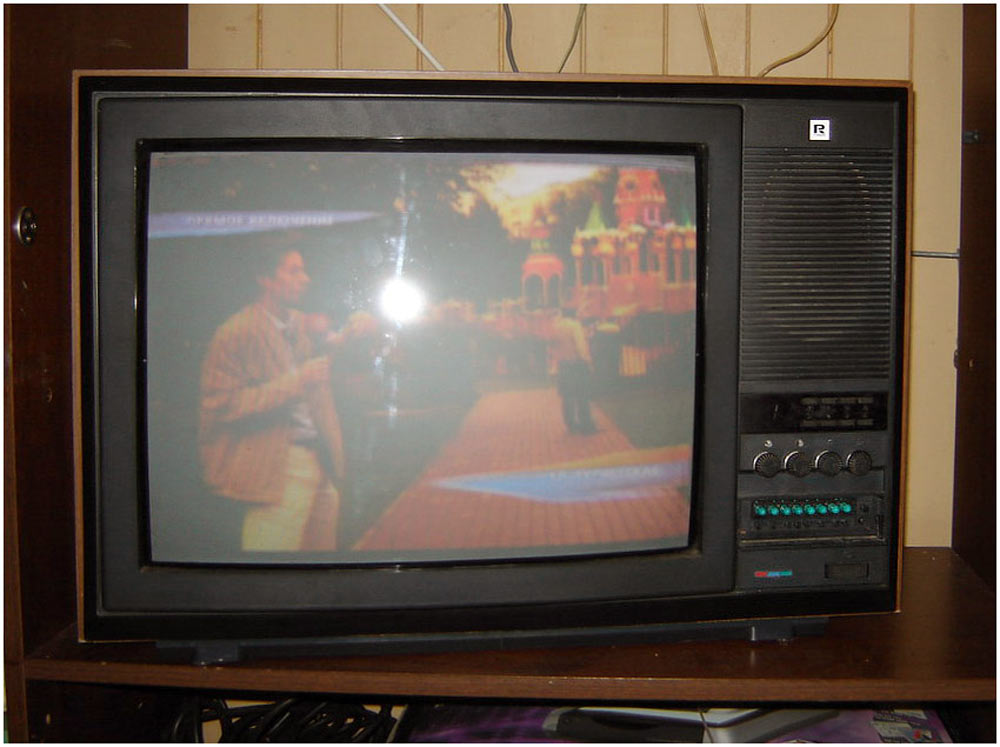 Телевизионный приёмник цветного изображения *Рубин 51/54ТЦ-402* с I-кв 1989 года выпускало Московское ПО *Рубин*. Цветной телевизор **Рубин 51/54ТЦ-402** - стационарный полупроводниково-интегральный модульной конструкции. Телевизор выпускался в 12-ти вариантах, с отечественными и импортными кинескопами размером 51 и 54 см. по диагонали с углом отклонения луча в 90 градусов и самосведением. Телевизор предназначен для приёма телевизионных передач цветного и ч/б изображения в МВ, ДМВ по системам СЕКАМ и ПАЛ. Модель обладает высокой чувствительностью и эффективной схемой АРУ, позволяя вести устойчивый приём. В телевизоре установлено устройство сопряжения с видеомагнитофоном, 8-ми программное устройство выбора программ с цифровой индикацией. В некоторых вариантах такой индикатор отсутствует. Любой телевизор обеспечивает автоматический выбор стандартов и системы цветного телевидения; автоматическое поддержание баланса белого цвета; подключение магнитофона для записи звукового сопровождения передачи; прослушивание его на головные телефоны; подключение видеомагнитофона для записи передач и воспроизведения видеозаписи. Модели выпускались в настольном оформлении. Чувствительность канала изображения, ограниченная синхронизацией в МВ диапазоне 40, в ДМВ 70 мкВ. Разрешающая способность в центре 350 линий. Номинальная выходная мощность канала звука 1 Вт. Диапазон воспроизводимых частот по звуковому давлению 100...10000 Гц. Потребляемая мощность 80 Вт. Габариты телевизора с экраном диагональю 51 см 453x643x482 мм, 54 см 453x643x473 мм. Вес телевизора 29 кг.