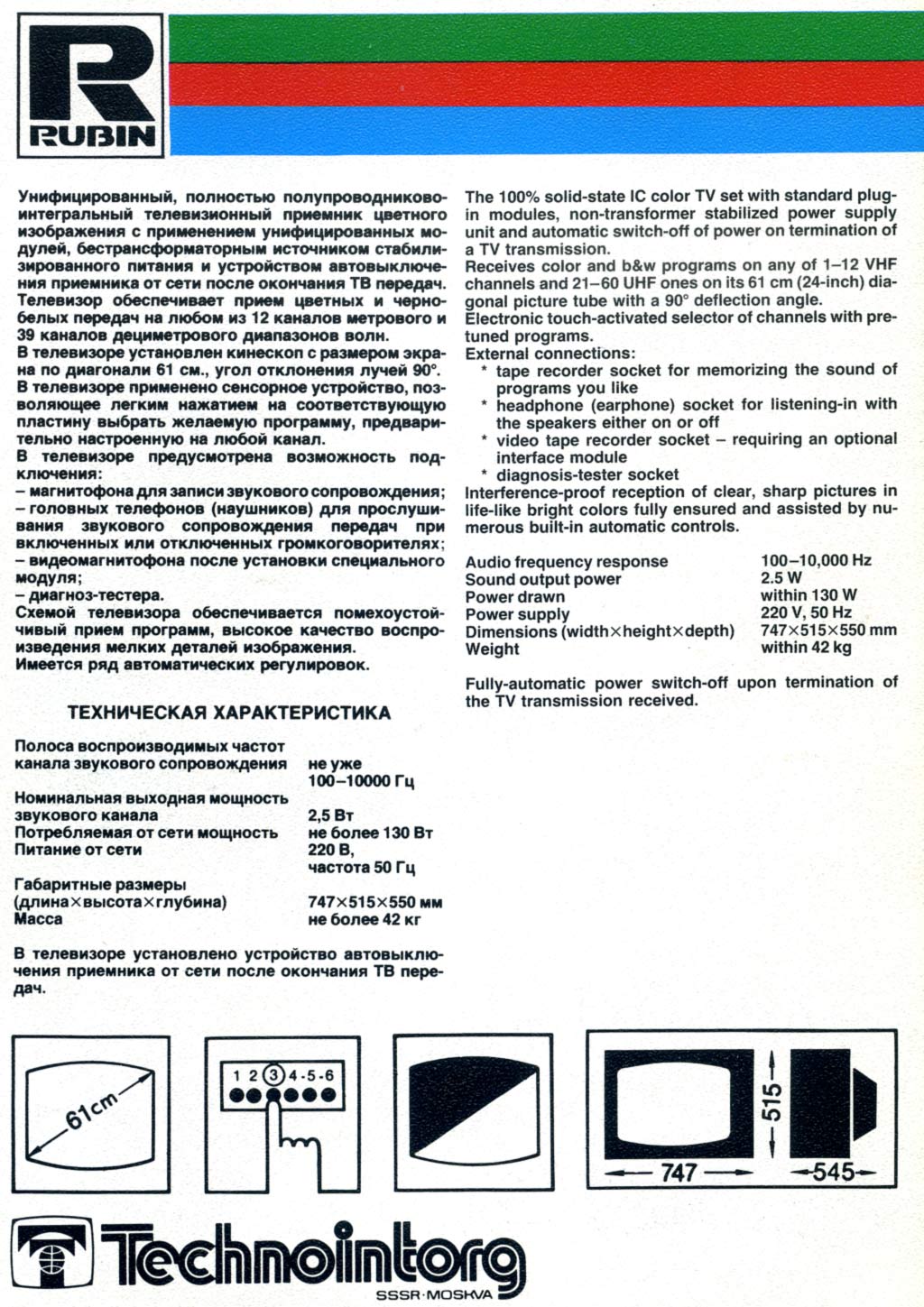 Цветной телевизор *Рубин Ц-211* подготовило для выпуска с 1983 года Московское МПО *Рубин*. Телевизор является модернизацией телевизора *Рубин Ц-210*. Диапазоны МВ/ДМВ. ТХ как у базовой модели. Основное отличие нового аппарата - устройство выключения телевизора после окончания передач.