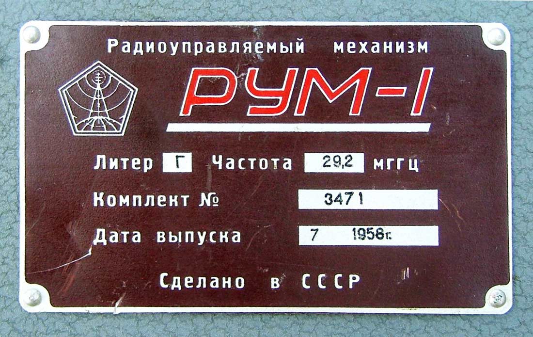 Шестиканальная аппаратура радиоуправления моделями *РУМ-1* разработана в Центральной авиамодельной лаборатории ДОСААФ СССР и производилась промышленностью с 1956 по 1959 год. Комплект аппаратуры *РУМ-1* предназначен для управления по радио моделями самолетов, кораблей, автомобилей и других устройств. В комплект аппаратуры входит трёхламповый передатчик с антенной и источниками питания, выносной пульт управления, позволяющий оператору подавать ту или иную команду, трёхламповый приёмник с одним резонансным и шестью поляризованными реле, исполнительные механизмы (три комплекта). Аппаратура позволяет выполнять 6 поочередных команд в любой последовательности. Радиус действия аппаратуры для наземных и надводных моделей до 500 м, для летающих до 1500 м. В приёмнике предусмотрена возможность перестройки по частоте от 27,8 до 29,7 МГц. Питание осуществляется от батарей или через блок питания от сети переменного тока. Всего до 1959 года было выпущено 20.000 аппаратов *РУМ-1*.