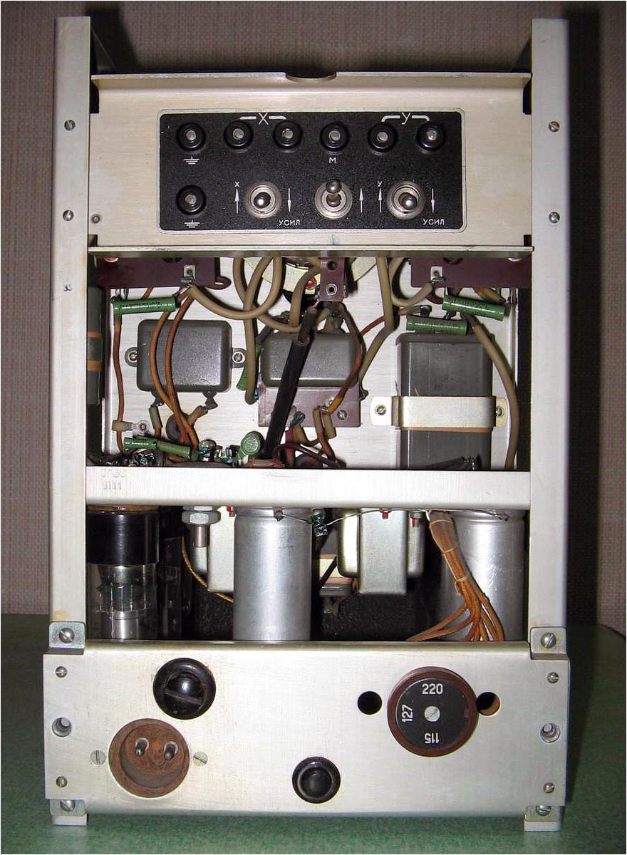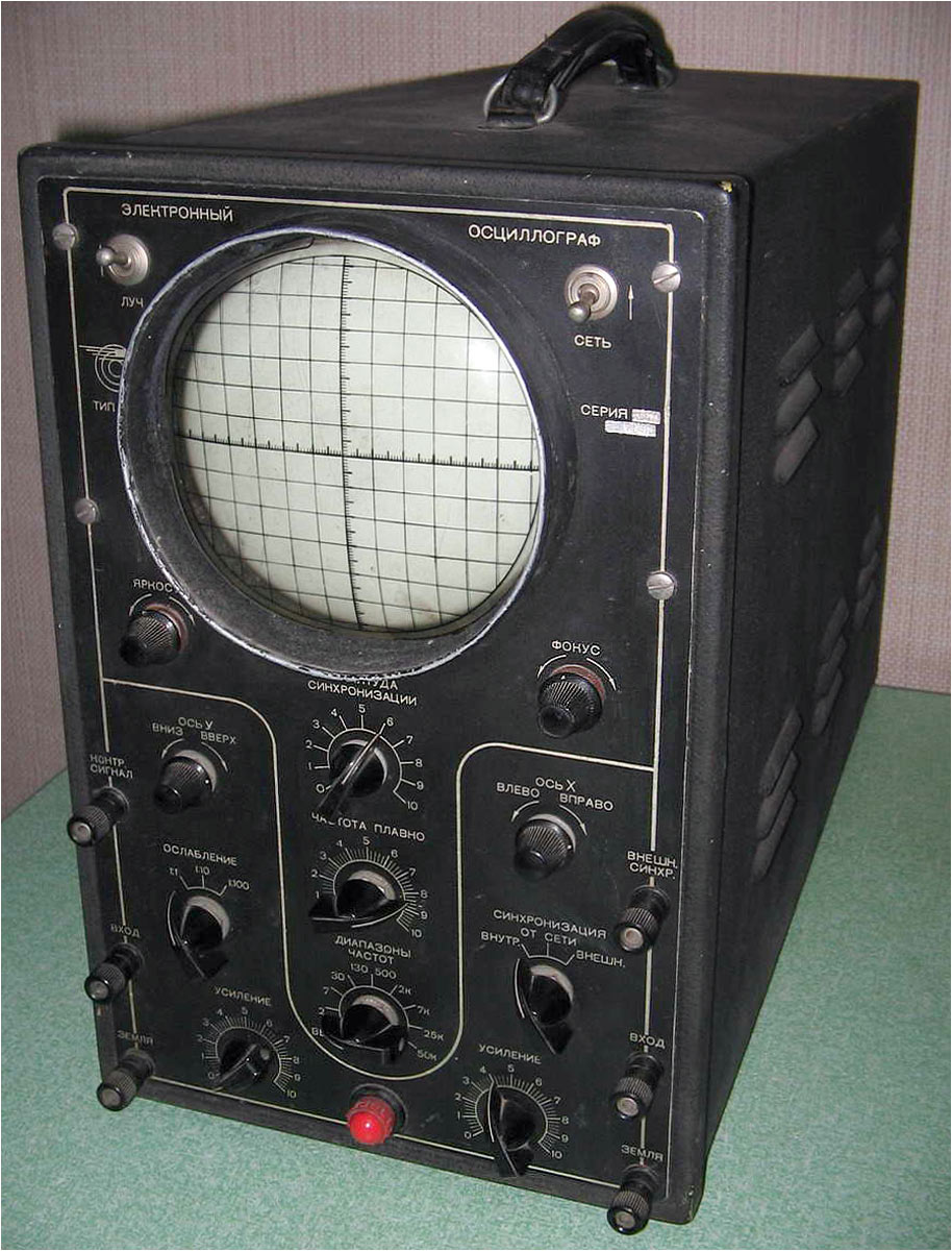 Электронный осциллограф *С1-1* с 1957 года по новому ГОСТу выпускал Рыбинский приборостроительный завод. Электронный осциллограф *С1-1* аналог *ЭО-7*, который выпускался с 1948 года. Осциллограф типа **С1-1** (ЭО-7) предназначен для исследования периодических процессов. Он применяется в заводских и лабораторных условиях. Чувствительность усилителя вертикального отклонения 0,25 см/мв. Коэффициент усиления 1800. Частотные искажения ±3 дб в диапазоне от 2 гц до 300 кгц. Входное сопротивление 2 Мом ±20% параллельно с ёмкостью до 30 пф. Коэффициент ослабления аттенюатора 1:1; 1:10; 1:100 в диапазоне от 2 гц до 250 кгц. Чувствительность усилителя горизонтального отклонения 4,5 см/в. Коэффициент усиления 35. Неравномерность частотной характеристики ± 3 дб в диапазоне от 2 гц до 250 кгц. Входное сопротивление 6 Мом ± 20% параллельно с емкостью до 30 пф. Входное сопротивление цепи внешней синхронизации 0,1 Мом ± 20% параллельно с емкостью до 40 пф. Имеется 8 диапазонов непрерывной развертки: это -7; 7-30; 30-130; 130-500 гц; 500 гц-2 кгц; -7; 7-25; 25-50 кгц. Нелинейность развертки не превышает 5%. Имеется 3 вида синхронизации: внутренняя (исследуемым сигналом), внешняя (внешним сигналом), от электросети (питающим напряжением). Предусмотрена возможность подачи исследуемого напряжения непосредственно на вертикальные и горизонтальные пластины ЭЛТ. Прибор питается от электрической сети переменного тока напряжением 220 в, частоте 50 гц. Потребляемая мощность 120 ва. Габариты 565х233х440 мм. Вес 24 кг.