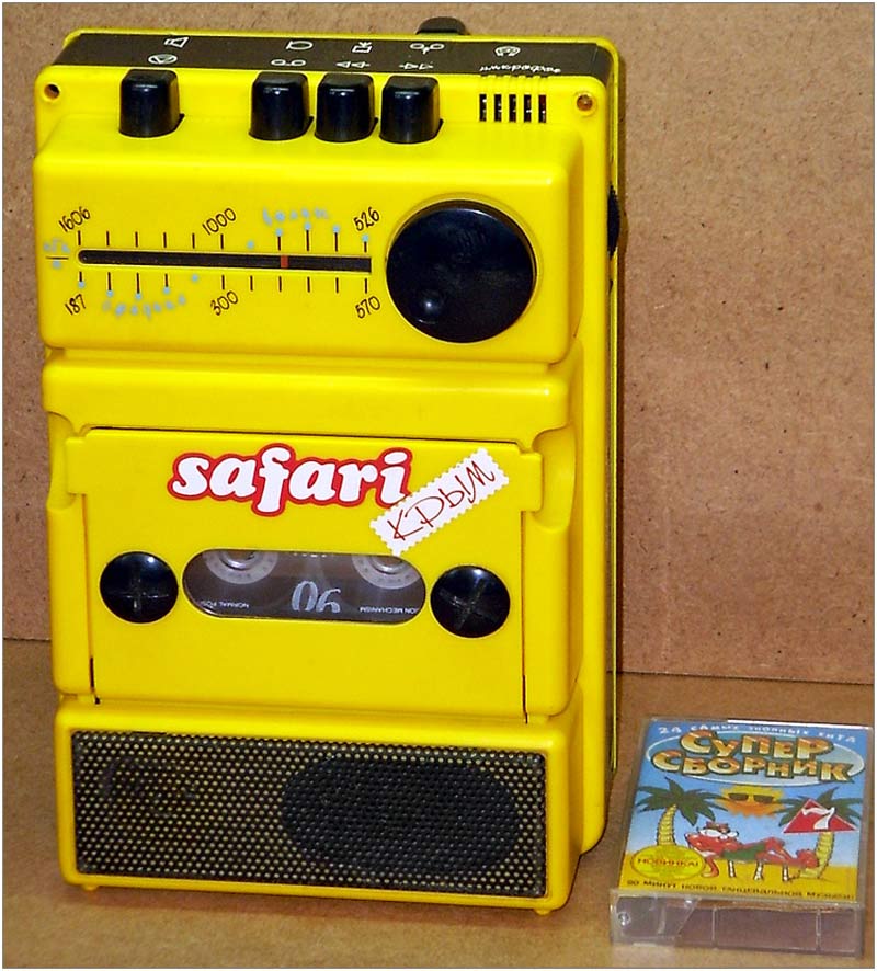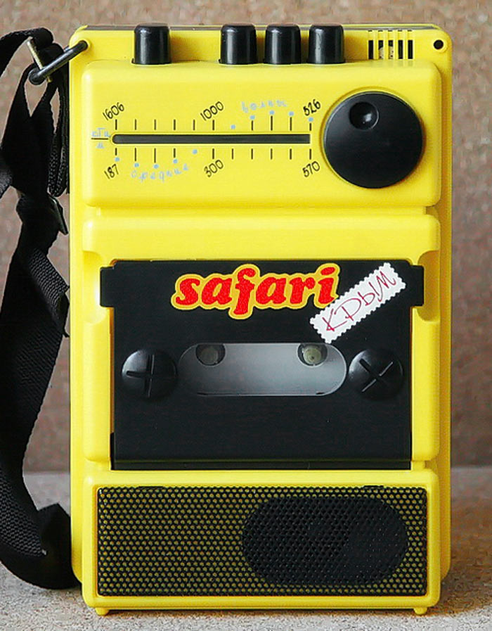 Магнитола-игрушка *Сафари-Крым* с начала 1991 года выпускал Симферопольский завод *Фиолент*. Магнитола предназначена для записи и воспроизведения фонограм с микрофона, встроенного приёмника или внешнего источника сигнала. Приёмник работает в диапазоне СВ. Чувствительность радиоприёмника с магнитой антенны 5 мВ/м. Селективность 5 дБ. Воспроизведение кассет со стереозаписью на головные телефоны стереофоническое. Со своего приёмника и микрофона (не везде он есть) запись монофоническая. Номинальная выходная мощность 150 мВт. Диапазон воспроизводимых звуковых частот при радиоприёме на выходе для телефонов - 100...5000 Гц, при воспроизведении магнитной записи - 80...10000 Гц, при работе встроенной АС диапазон воспроизводимых частот - 250...5000 Гц.