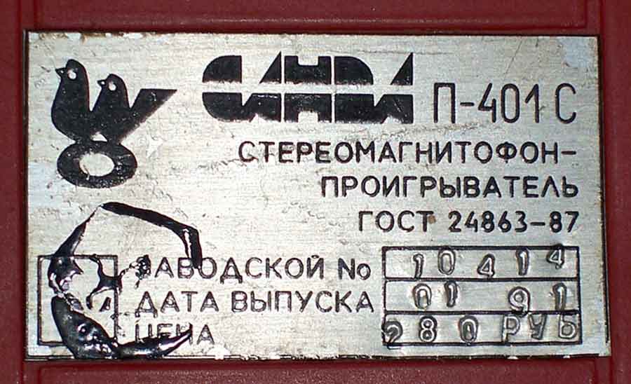 Кассетный магнитофон-проигрыватель *Санда П-401С* с 1991 года выпускал Марийский машиностроительный завод. *Санда П-401С* - носимый стереофонический магнитофон-проигрыватель с напряжением питания 3 В. Он позволяет прослушивать фонограммы с кассет МК-60, с подключением 2-х пар стереотелефонов. МП можно подключать и к усилителю любого радиоустройства. МП питается от 2-х элементов A-316 или от сети, через блок питания с выходным напряжением 3 В и током 0,6 А, который входит в комплект МП. Время работы от свежего комплекта элементов не менее 3-х часов. Скорость протяжки ленты 4,76 см/с; диапазон воспроизводимых частот 63...10000 Гц; коэффициент детонации не более ± 0,4%; КНИ 1%; наружные габариты МП -150x107x38 мм; масса 150 г.