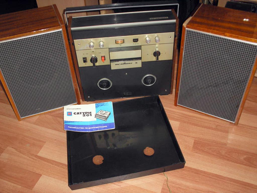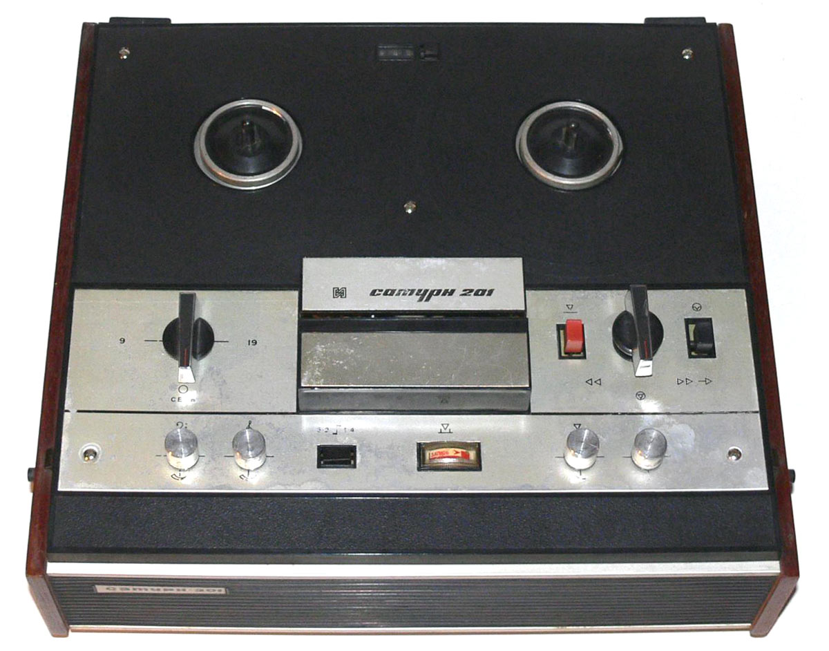 Катушечный транзисторный магнитофон *Сатурн-201* с I-кв 1978 года выпускал Омский электротехнический завод имени Карла Маркса. **Сатурн-201** является аналогом магнитофона **Сатурн-301** выпуска 1973 года. Он предназначен для записи и воспроизведения речевых и музыкальных программ. В модели имеется стрелочный индикатор уровня записи и трёхдекадный счётчик для поиска фонограмм и контроля расхода ленты. Прослушать записи можно через встроенный громкоговоритель, внешнюю АС и головные телефоны. Магнитная лента типа А4407-6Б. Номер катушки 15. Скорость протяжки ленты 19,05 и 9,53 см/с. Время записи на скорости 19,05 см/с - 4х33 минут, 9,53 см/с - 4х65 минут. Диапазон частот звука на ЛВ на скорости 19,05 см/с - 40...18000 Гц, 9,53 см/с - 63...12500 Гц. Коэффициент детонации на скорости 19,05 см/с - ±0,15 %. 9,53 см/с - ±0,25 %. Диапазон регулировки тембра ВЧ, НЧ - 15 дБ. Номинальная выходная мощность при работе на встроенную АС - 2 Вт, внешнюю АС - 6 Вт. Потребляемая от сети мощность 50 Вт. Габариты магнитофона - 412х362х163 мм. Его масса - 11,5 кг.