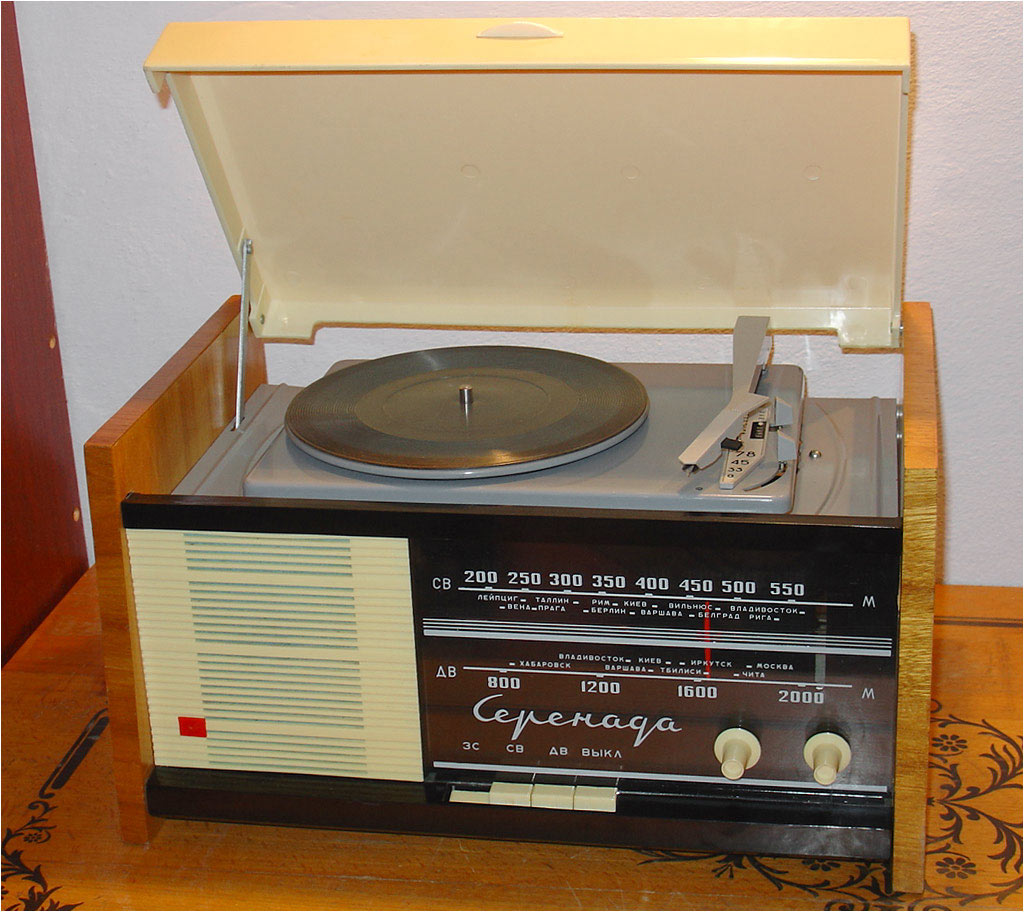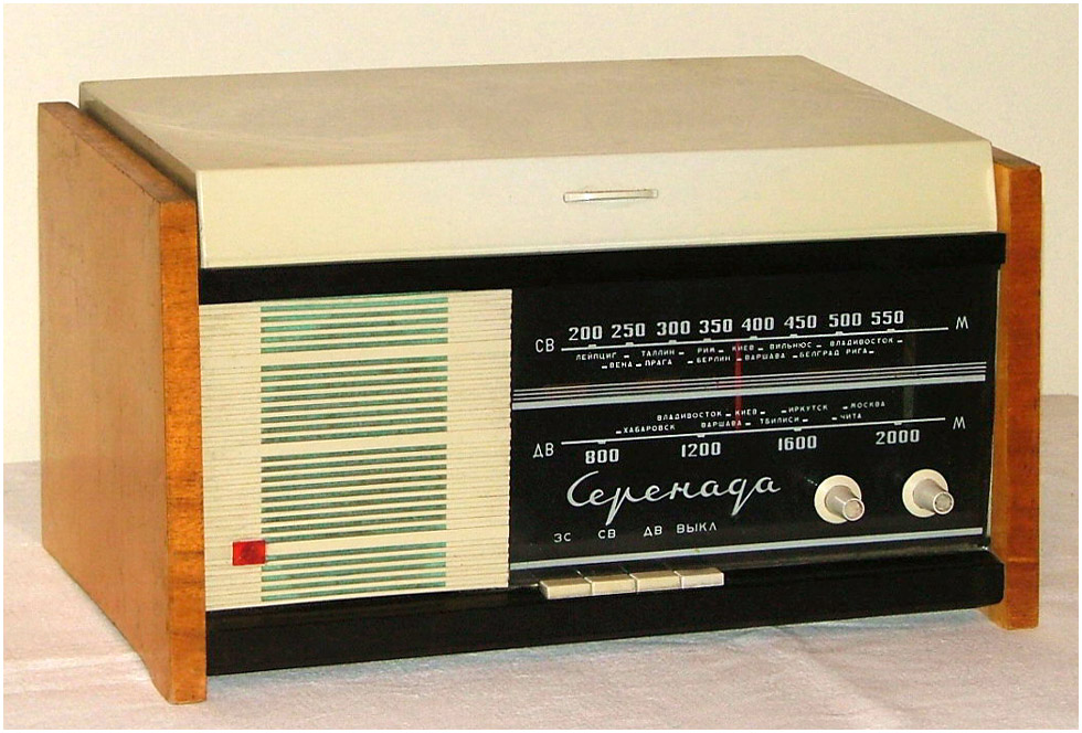 Радиола сетевая ламповая *Серенада* с 1963 года выпускалась Владивостокским заводом *Радиоприбор*. Настольная радиола 4-го класса **Серенада** представляет из себя супергетеродинный радиоприёмник, работающий в диапазонах ДВ, СВ, объединённый с электропроигрывающим устройством ЭПУ-5. В 1965 году было установлено 3-ЭПУ-28, ещё позднее 3-ЭПУ-28М. Радиола собрана на трёх радиолампах 6И1П (2 шт) и 6П14П а также 5 диодах Д2Д (1 шт) и Д7Г (4 шт). Чувствительность радиолы в обоих диапазонах с антенного входа не менее 300 мкВ. Избирательность по соседнему каналу 20 дБ. Избирательность по зеркальным каналам 24 дБ. Номинальная выходная мощность 0,5, максимальная 1 Вт. Диапазон частот, воспроизводимых громкоговорителем 1ГД-10, позднее 1ГД-18, ещё позднее 1ГД-28 - 200...3000 Гц при радиоприёме и 200...6300 при работе ЭПУ. Радиола потребляет при проигрывании пластинок 50 Вт, при приёме 35 Вт. Размеры модели 420х275х240 мм, масса 10 кг. Радиола *Серенада* выпускалась до 1973 года.