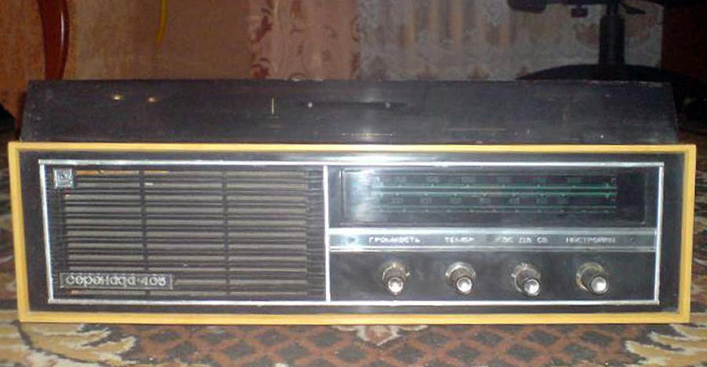 Стационарная транзисторная радиола *Серенада-405* с начала 1978 года выпускалась Владивостокским заводом *Радиоприбор*. Монофоническая радиола 4-го класса **Серенада-405** является модернизацией модели **Серенада-404**. Новая модель рассчитана на приём радиостанций в ДВ, СВ диапазонах, а также на воспроизведение грамзаписи с грампластинок всех форматов. В радиоле установлено двухскоростное ЭПУ типа III-ЭПУ-38 или другое. Работает радиола на АС с динамической головкой 1ГД-40Р. Чувствительность в диапазонах ДВ, СВ - 250...300 мкВ. Селективность 26 дБ. Номинальная выходная мощность 0,5, максимальная 0,8 Вт. Диапазон воспроизводимых частот при приёме радиостанций 200...3150 Гц, при воспроизведении грамзаписи 200...6300 Гц. Питание - электрическая сеть 127 или 220 В. Мощность, потребляемая от сети 30 Вт при работе ЭПУ и 18 Вт при радиоприёме. Габариты радиолы - 196 х 446 х 286 мм. Вес без упаковки 9, с упаковкой 11 кг.