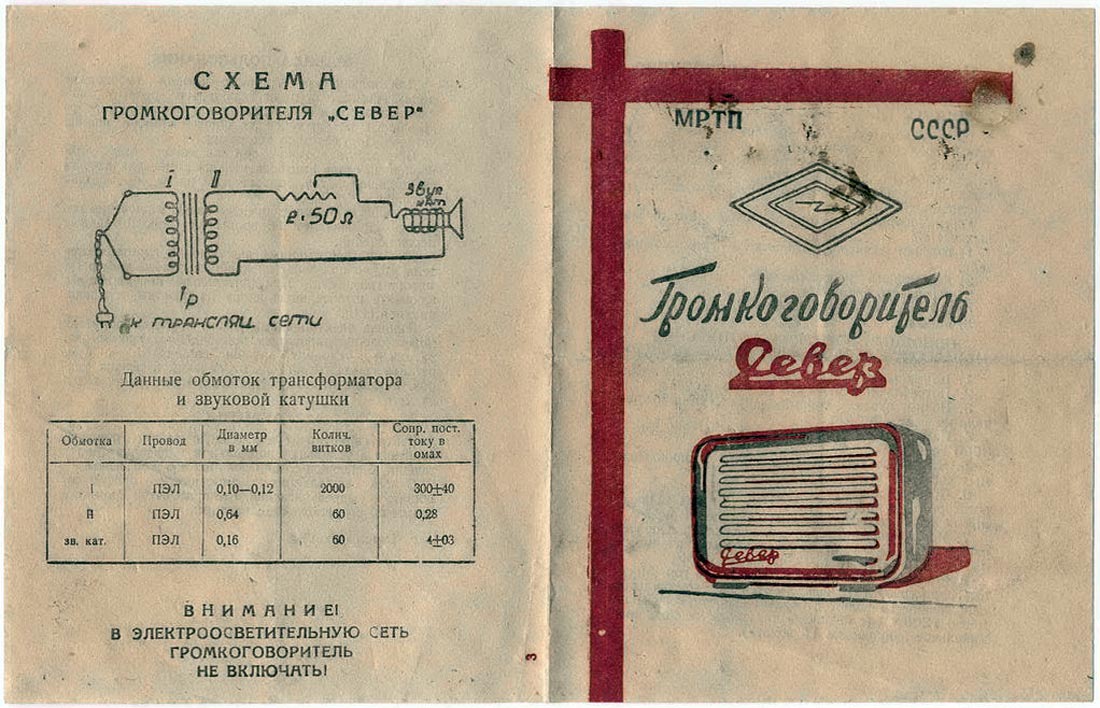 Абонентский громкоговоритель "Север" с 1952 года выпускал Томский завод измерительной аппаратуры. Стандартный абонентский громкоговоритель 4-го класса по ГОСТ 5961-51 для 30-ти вольтовой радиотрансляционной сети. Регулятор громкости, обеспечивает её изменение на 20 дБ. Номинальная потребляемая мощность 0,2 Вт. Полоса воспроизводимых звуковых частот 250...3000 Гц. Входное сопротивление 4,5 кОм. Габариты АГ - 230х300х110 мм. Масса 2,5 кг. Для Московской городской сети громкоговоритель выпускался на напряжение 15 вольт.