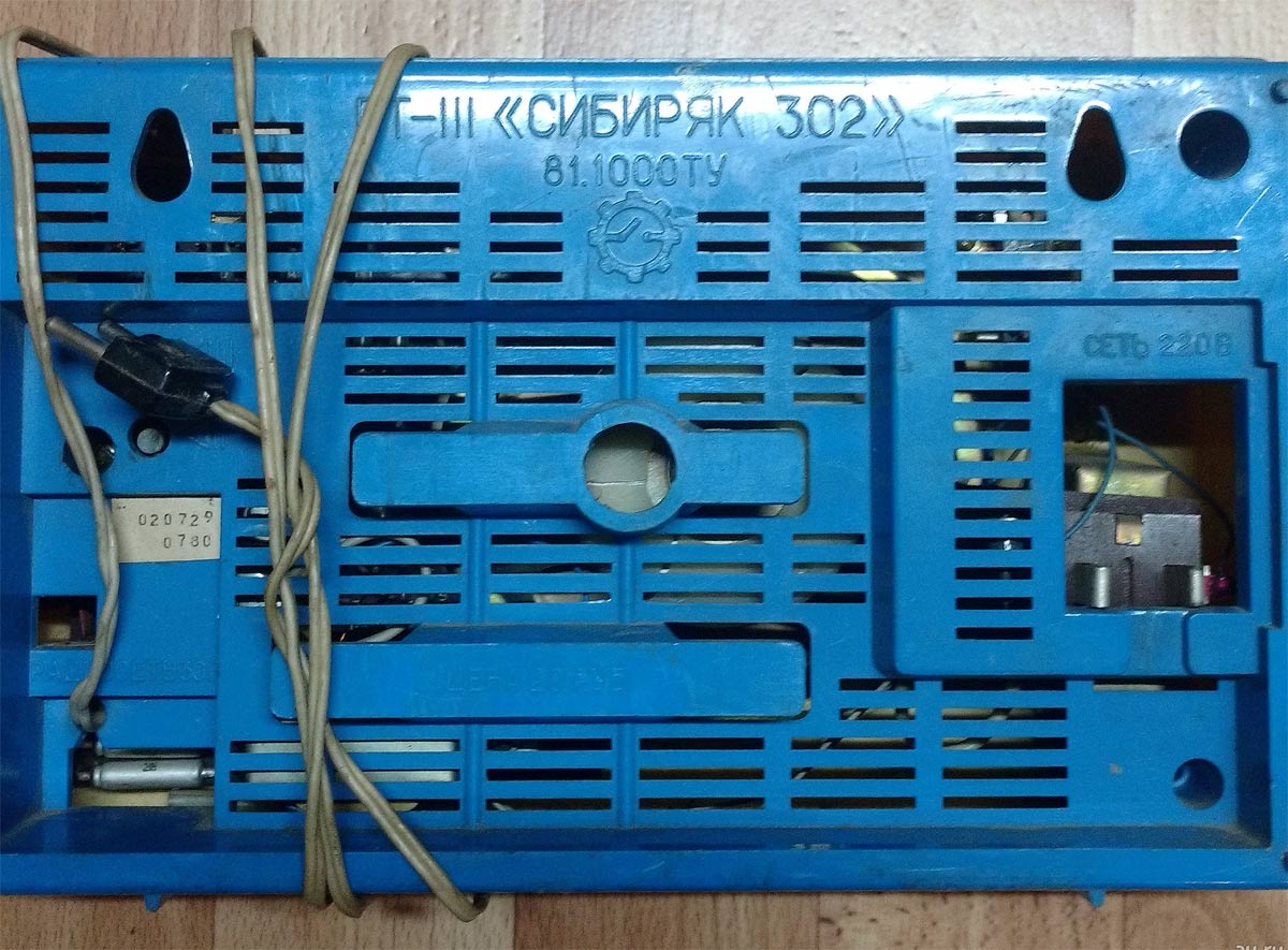 Приёмник трёхпрограммный *Сибиряк-302* с 1981 года выпускал Новосибирский завод низковольтной аппаратуры. ПТ *Сибиряк-302* третьего класса (тип ГТ-III) - первый из новой линейки трехпрограммных громкоговорителей НЗНВА. Аппарат предназначен для воспроизведения передач любой из 3-х программ, транслируемых по системе трехпрограммного проводного вещания. При воспроизведении НЧ канала ПТ может работать с усилением и без. В ПТ предусмотрено гнездо для подключения магнитофона на запись. В местах где нет трёхпрограммного вещания ПТ можно использовать как обычный абонентский громкоговоритель. Напряжение в радиосети 30 (15) В. Питание ПТ осуществляется электросети в 220 В. Потребляемая мощность - 3 Вт. Диапазон частот по каналам РЧ - 160...6300 Гц, НЧ - 160...8000 Гц. Номинальная выходная мощность - 500 мВт.