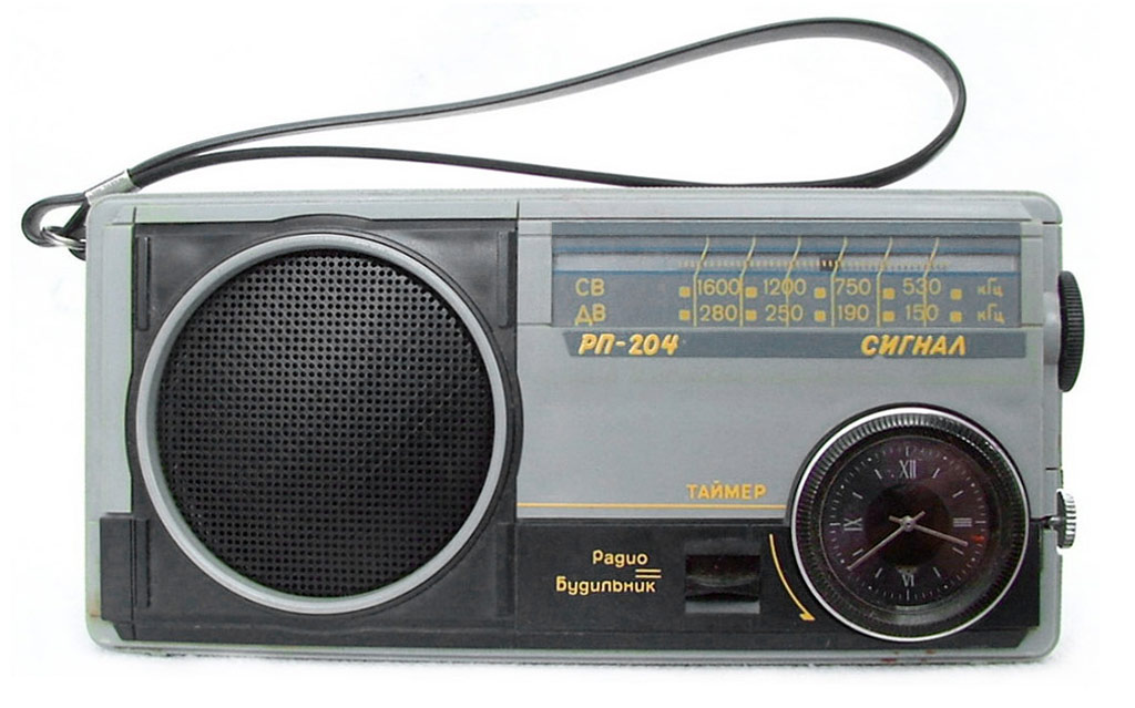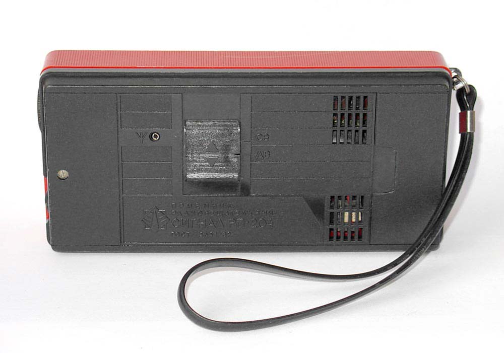 Радиоприёмник с таймером и часами *Сигнал РП-204* с начала 1989 года выпускал Каменск-Уральский ПСЗ. Радиоприемник предназначен для приёма в диапазонах ДВ и СВ на внутреннюю магнитную антенну. В приёмнике имеются гнёзда для подключения головного телефона, внешней антенны и источника питания. Время работы приёмника от свежей батареи при работе около 4-х часов в сутки и средней громкости 40 часов. Радиоприёмник имеет таймер, который кроме отсчета времени позволяет автоматически включать приёмник на 30 мин. в заданное время. Чувствительность в диапазонах: ДВ 2,5, СВ 1,5 мВ/м. Односигнальная избирательность 30 дБ. Максимальная выходная мощность 0,15 Вт. Диапазон воспроизводимых частот 450...3150 Гц. Питание от батареи **Корунд**. Размеры приемника - 165x80x37 мм. Масса - 0,45 кг.