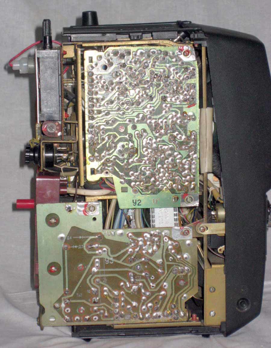 Телевизионный приёмник ч/б изображения *Шилялис-403Д* с 1977 года выпускал Каунасский радиозавод. Малогабаритный, переносный телевизор 4-го класса **Шилялис-403Д** обеспечивает приём на любом канале МВ и ДМВ диапазонов. Кинескоп установлен с размером 16 см по диагонали. В модели используются электронные селекторы каналов, управляемые кнопочным механизмом с блоком памяти на четыре фиксированные программы, имеется обзор всего ТВ диапазона. Быстродействующая система АРУ, а также повышенная помехозащищенность трактов блока развертки и УПЧ изображения обеспечивают приём с антенной *АТА-1* даже в движущемся автомобиле. Телевизор выполнен на 2 интегральных микросхемах, 39 транзисторах и 33 диодах. Чувствительность в МВ диапазоне - 50 мкВ, в ДМВ - 100 мкВ. Выходная мощность канала звука - 0,25 Вт. Диапазон воспроизводимых частот - 300...5100 Гц. Потребляемая мощность от сети - 18 Вт, автономного источника напряжением 12 В - 10 Вт. Габариты ТВ - 255х160х220 мм. Масса 5,7 кг.