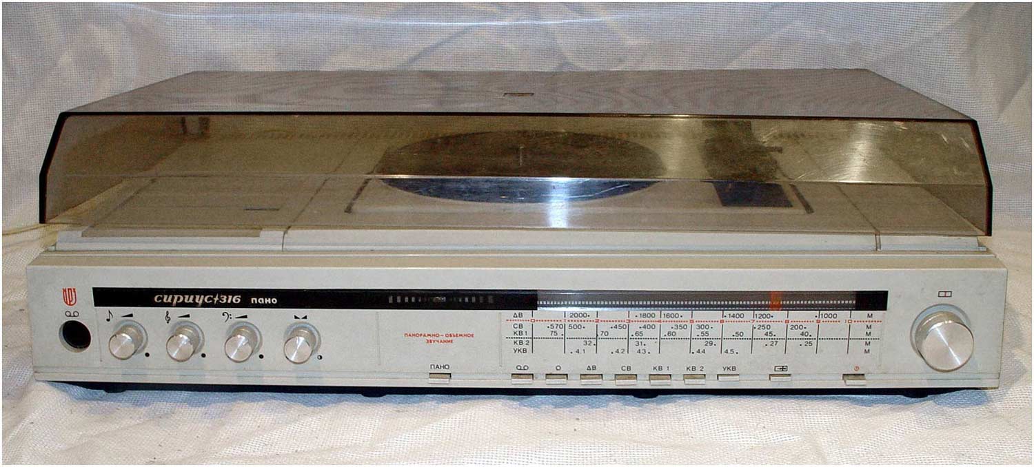 Стационарная транзисторная радиола *Сириус-316-Пано* с 1985 года выпускалась Ижевским радиозаводом. Транзисторная радиола **Сириус-316-Пано** рассчитана на приём программ радиостанций в диапазонах ДВ, СВ, КВ (2 поддиапазона) и УКВ, на воспроизведение грампластинок любых форматов и прослушивание фонограмм с внешнего магнитофона. Особенность модели - это прослушивание монофонических программ и с псевдо стереоэффектом ненаправленного объемного звучания. Реальная чувствительность приёмника в диапазонах ДВ, СВ, КВ 75..100 мкВ, на УКВ 7,5 мкВ. Селективность по соседнему каналу в АМ тракте 26 дБ. Диапазон воспроизводимых частот звука в тракте АМ 100-3550 Гц, ЧМ и грамзаписи 100...10000 Гц. Максимальная выходная мощность - 2х4,5 Вт. Потребляемая мощность - 40 Вт. Габариты модели - 580х370х160 мм. Одной АС - 220х185х380 мм. Масса с АС - 17 кг.