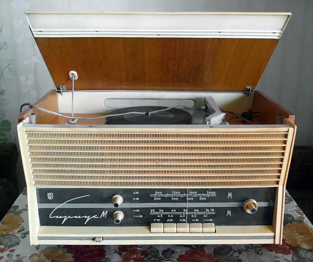 Радиола сетевая ламповая *Сириус-М* с 1965 года выпускалась Ижевским радиозаводом. Сетевая настольная ламповая радиола третьего класса **Сириус-М** создана на основе радиолы **Сириус** и по конструкции, параметрам, схеме и внешнему оформлению схожа с ней, лишь за добавлением обзорного диапазона коротких волн 25...75 метров которого не было в базовой модели, да соответствующими изменениями в электрической схеме. Радиола **Сириус-М** предназначена для приёма в диапазонах ДВ, СВ, КВ, УКВ и воспроизведения грамзаписи. Она имеет АРУ, регулировку тембра по ВЧ и акустическую систему, состоящую из 2-х динамических громкоговорителей 1ГД-28. В радиоле применены лампы 6НЗП, 6И1П, 6К4П, 6Н2П, 6П14П. ПЧ по AM тракту 465 Кгц, ЧМ 6,5 Мгц. Чувствительность в диапазонах ДВ, СВ 200 мкВ, KB 300 мкВ, УКВ 30 мкВ. Избирательность в диапазонах ДВ, СВ, КВ 26 дБ. Полоса воспроизводимых частот в АМ тракте 150...3500 Гц, при прослушивании грамзаписи и по ЧМ - 150...7000 Гц. Номинальная выходная мощность 0,5 Вт, потребляемая мощность 65 Вт. Масса 14 кг.