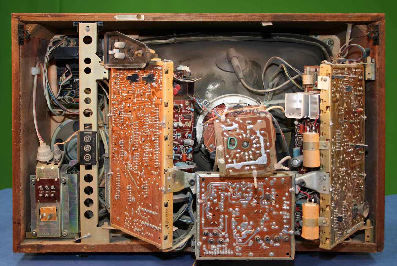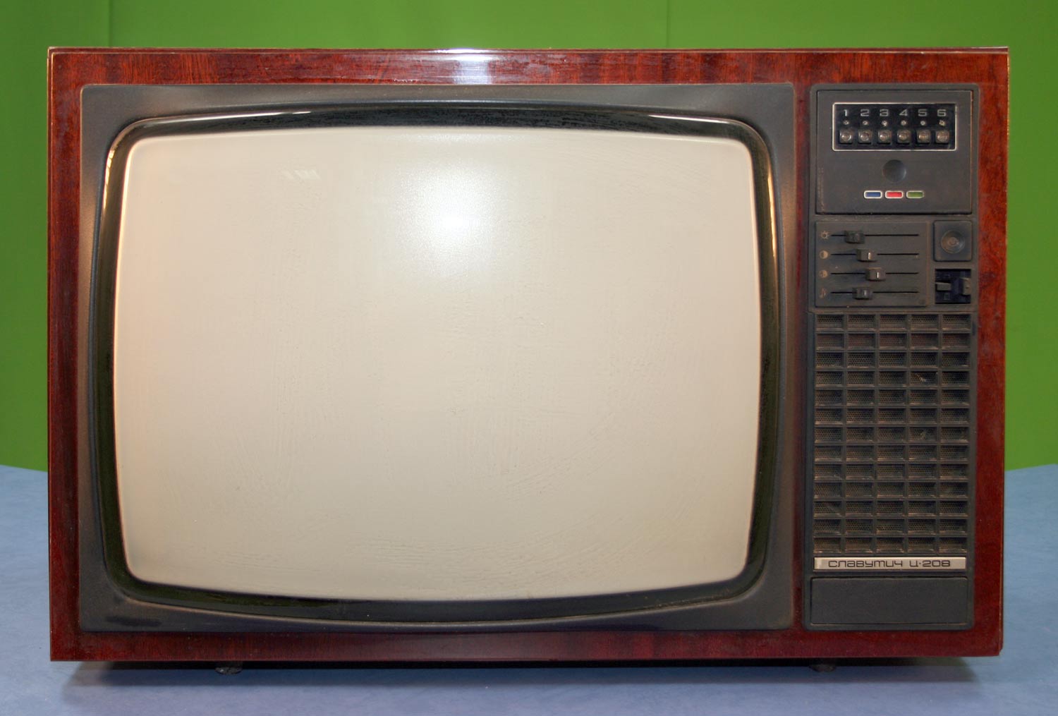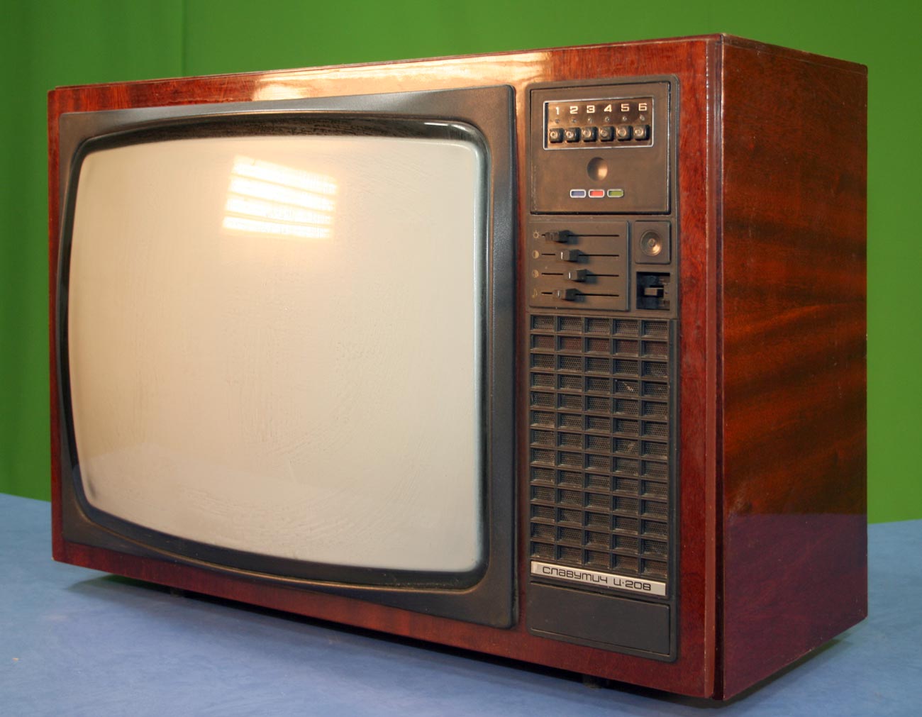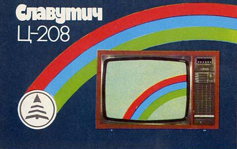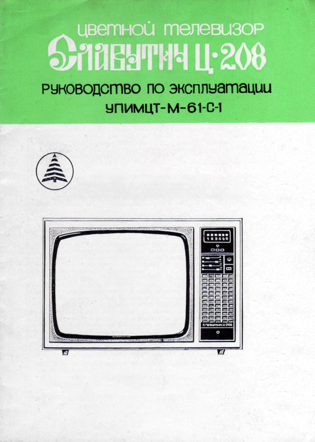 Телевизионный приёмник цветного изображения *Славутич Ц-208* с 1986 года выпускал Киевский радиозавод. Цветной полупроводниково-интегральный телевизор блочно-модульной конструкции УПИМЦТ-М-61-С-1 с кинескопом 61ЛК4Ц и углом отклонения лучей в 90° (наличие блока сведения). Сенсорное устройство выбора программ. Световая индикация для выбранной программы. Приём в диапазонах МВ и ДМВ. Гнёзда для подключения магнитофона, головных телефонов. Корпус облицован декоративной плёнкой или шпоном с лаковым покрытием. Потребляемая мощность 145 Вт. Габариты ТВ - 520x752,5x558 мм. Вес 43,5 кг. Цена 665 рублей. Подробнее в инструкции по эксплуатации.