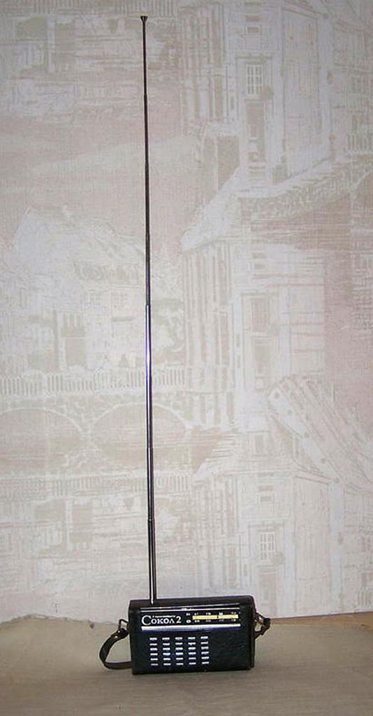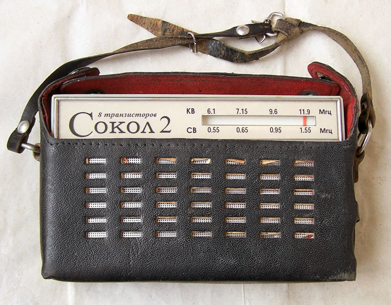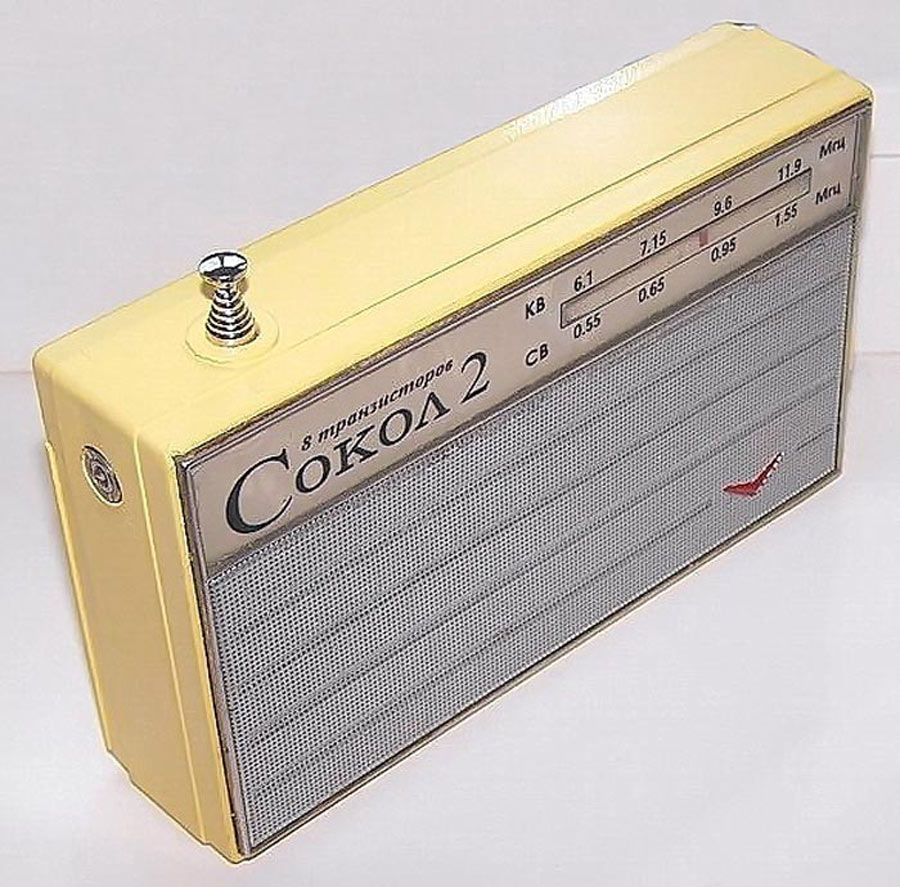 Портативный радиоприёмник *Сокол-2* с 1965 года выпускал Московский Государственный радиозавод *Красный Октябрь*. Приёмник создан на базе приёмника **Сокол**, отличаясь от него введённым КВ диапазоном, вместо диапазона ДВ. Приёмник представляет собой супергетеродин, собранный на 8-ми транзисторах. Он предназначен для приёма передач радиовещательных станций в диапазоне СВ на внутреннюю магнитную антенну, а в диапазоне КВ - 25...49 м, на штыревую телескопическую антенну. Реальная чувствительность: на СВ - 0,8 мВ/м, на КВ - 100 мкВ. Избирательность по соседнему каналу на СВ - 26 дБ. Ослабление сигнала зеркального канала на СВ 26 дБ, КВ 12 дБ. ПЧ - 465 кГц. Полоса воспроизводимых звуковых частот 450...3000 Гц. Номинальная выходная мощность 100 мВт. Источник питания - батарея Крона или аккумулятор 7Д-0,1. Потребляемый ток без сигнала - 5,5 мА. Работоспособность сохраняется при снижении напряжения питания до 5,6 В. Длительность работы приёмника при средней громкости: от батареи Крона 15...30 часов, от аккумулятора около 12 часов. Габариты приёмника 152х90х35 мм. Масса 420 грамм. Радиоприёмник *Сокол-2* комплектовался кожаным футляром с ремнём.