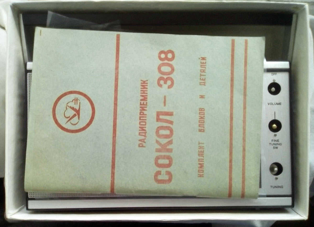Радиоприёмник *Сокол-308* из радиоконструктора выпускался с 1977 года Московским ПО *Темп*. Радиоконструктор представлял собой уже собранную и настроенную печатную плату радиоприёмника, корпус и комплектующие, которые необходимо было собрать воедино, следуя приведённой инструкции. Собранный приёмник не отличался от заводского приёмника *СОКОЛ-308* выпускаемого с 1976 года. Выпускался радиоконструктор и в экспортном варианте.