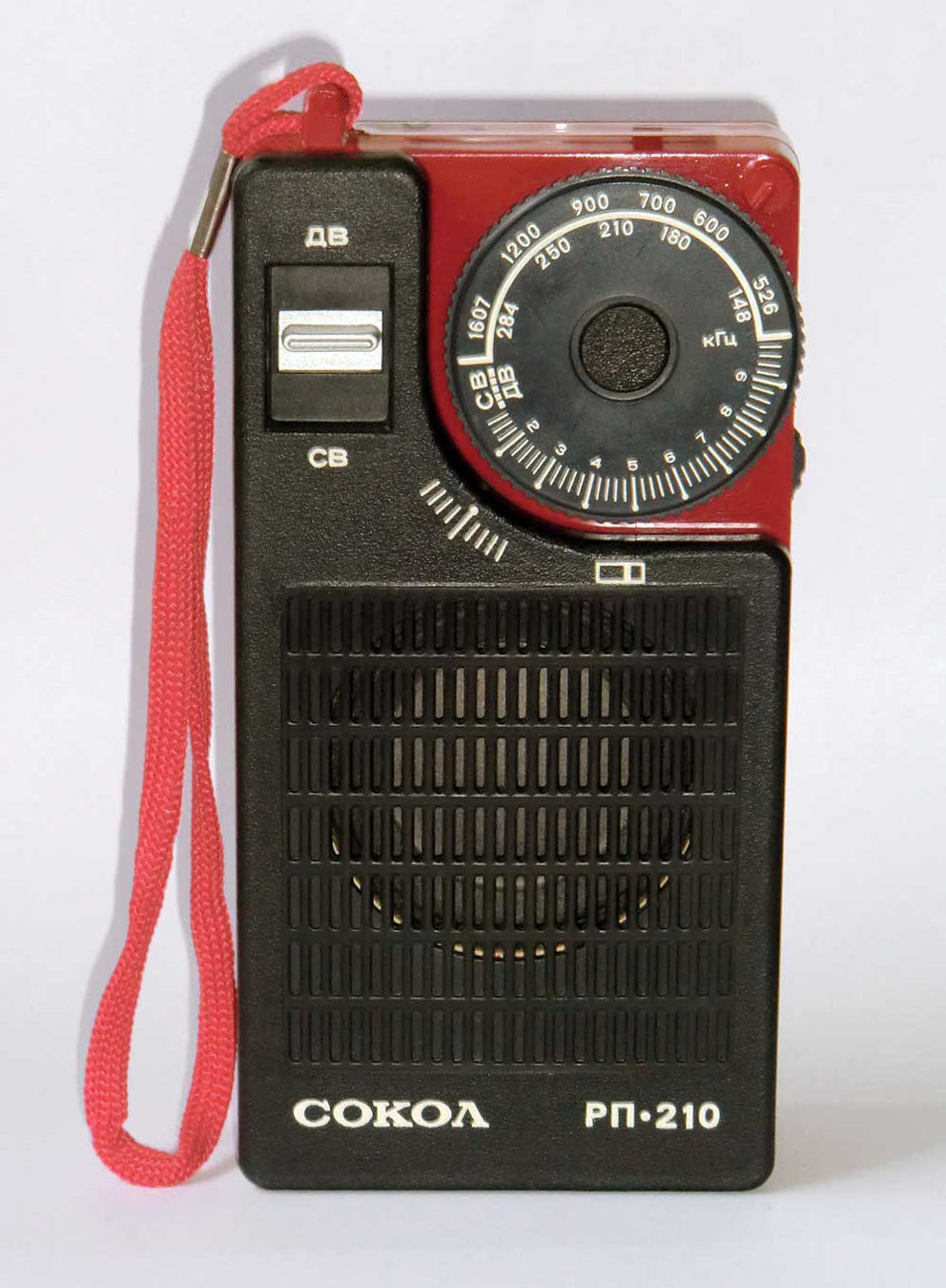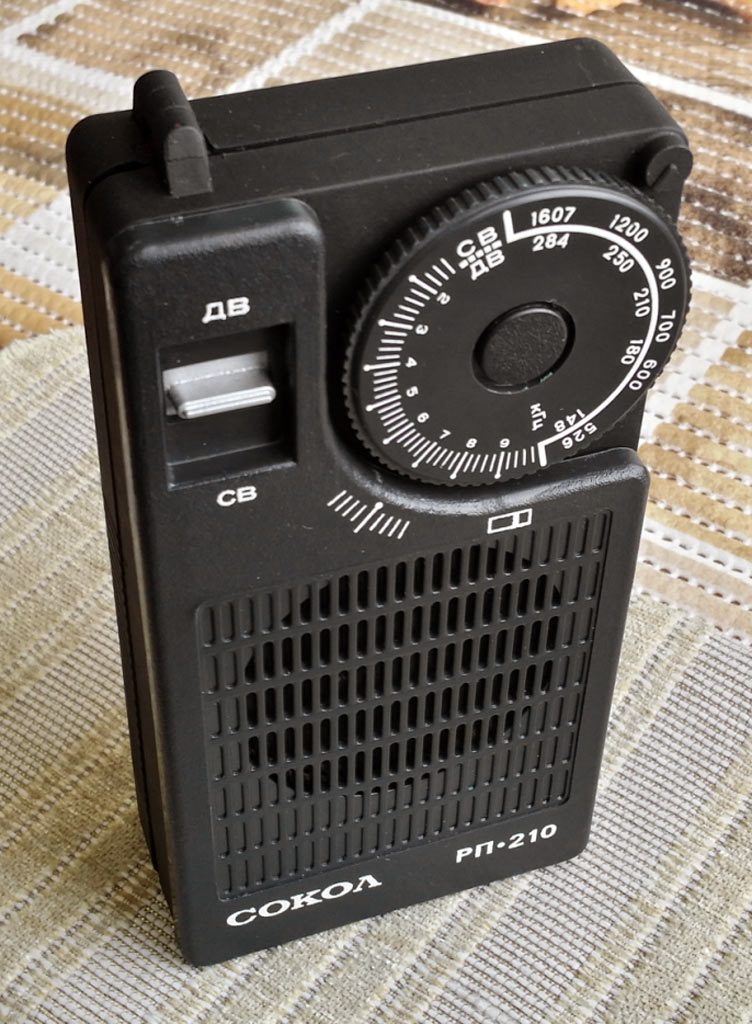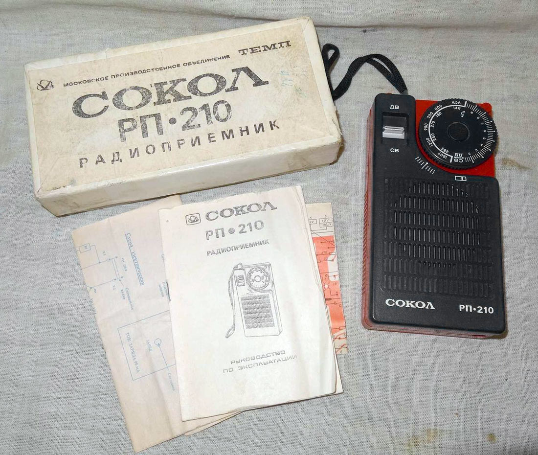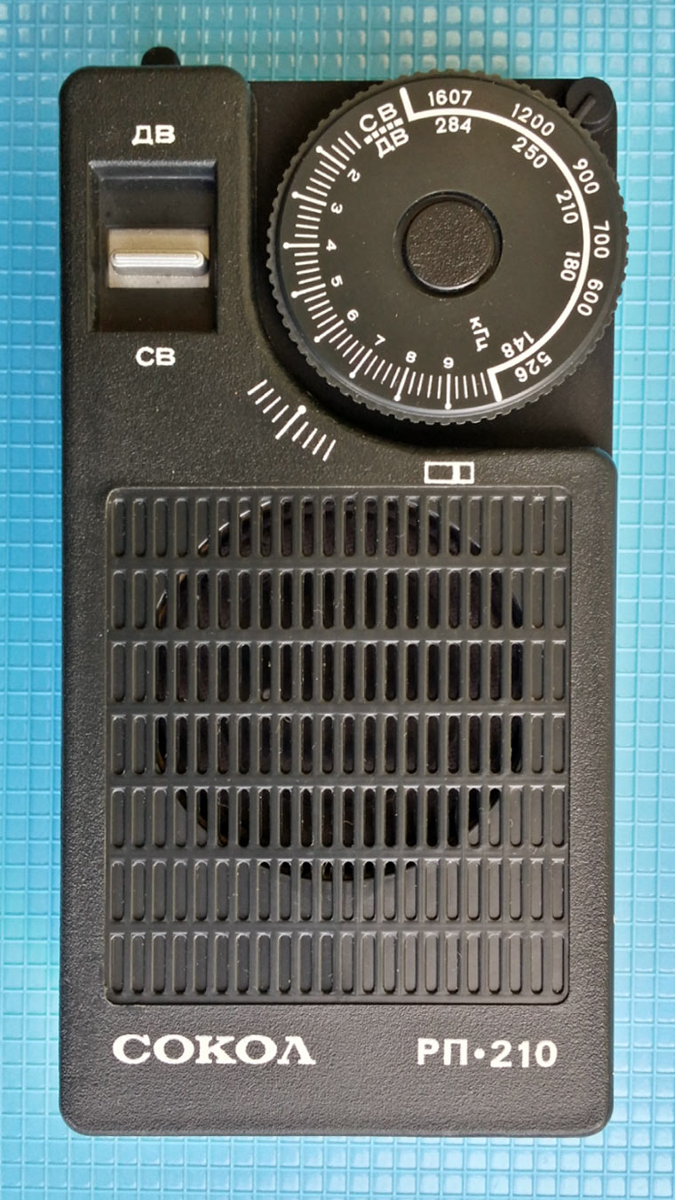 Портативный радиоприёмник *Сокол РП-210* с 1991 года выпускало Московское производственное объединение *Темп*. Приёмник по своей схеме, конструкции и внешнему виду практически схож с предыдущим радиоприёмником **Сокол РП-310***. Диапазоны волн: ДВ и СВ. Чувствительность в ДВ диапазоне 2,5 мВ/м, СВ 1,5 мВ/м. Селективность, при расстройке на 9 кгц - 29 дБ. Номинальная выходная мощность 100 мВт. Диапазон воспроизводимых звуковых частот 450...3150 Гц. Питание осуществляется от четырёх элементов А-316 (АА) или им подобных. Габаритные размеры радиоприёмника 162х82х38 мм. Его масса 310 грамм.