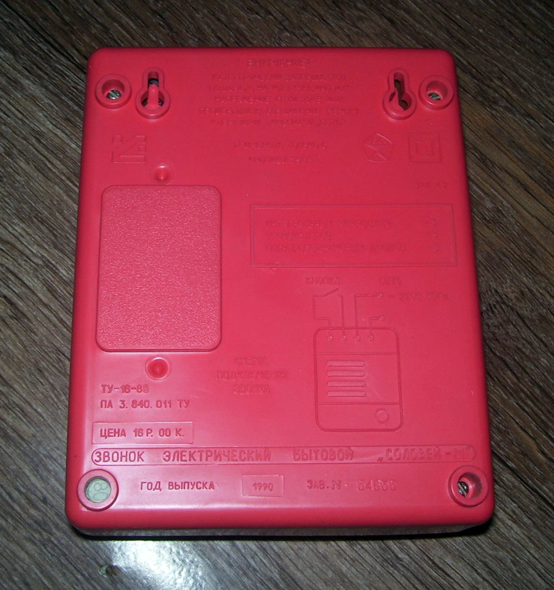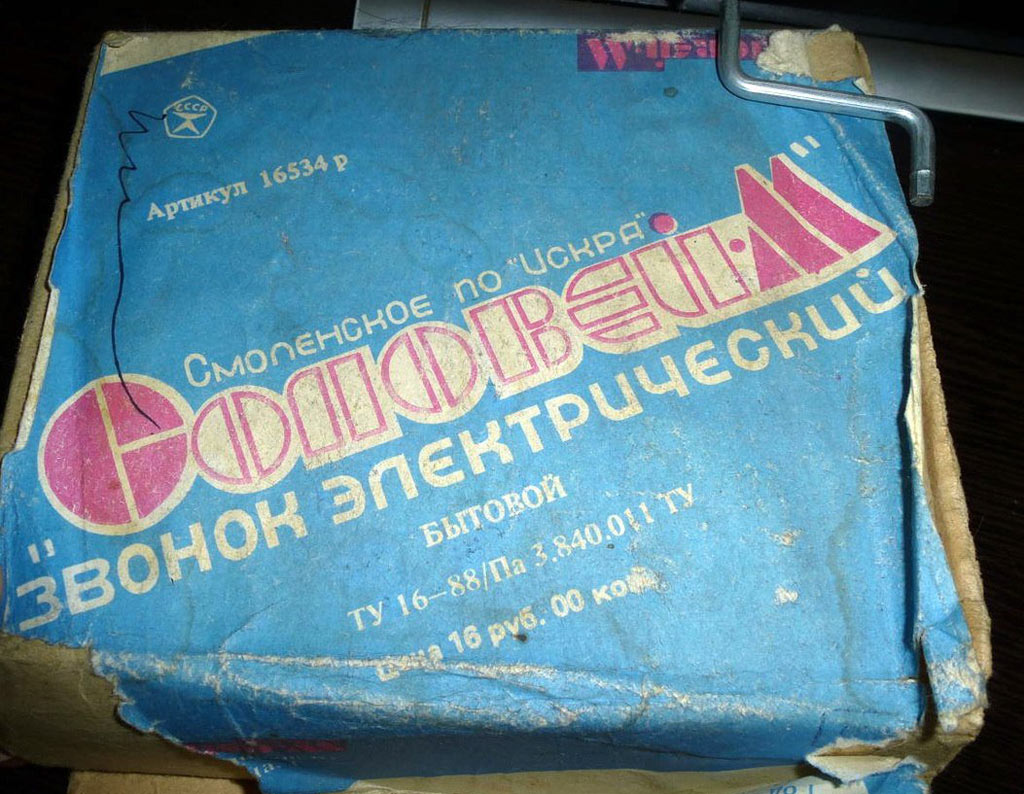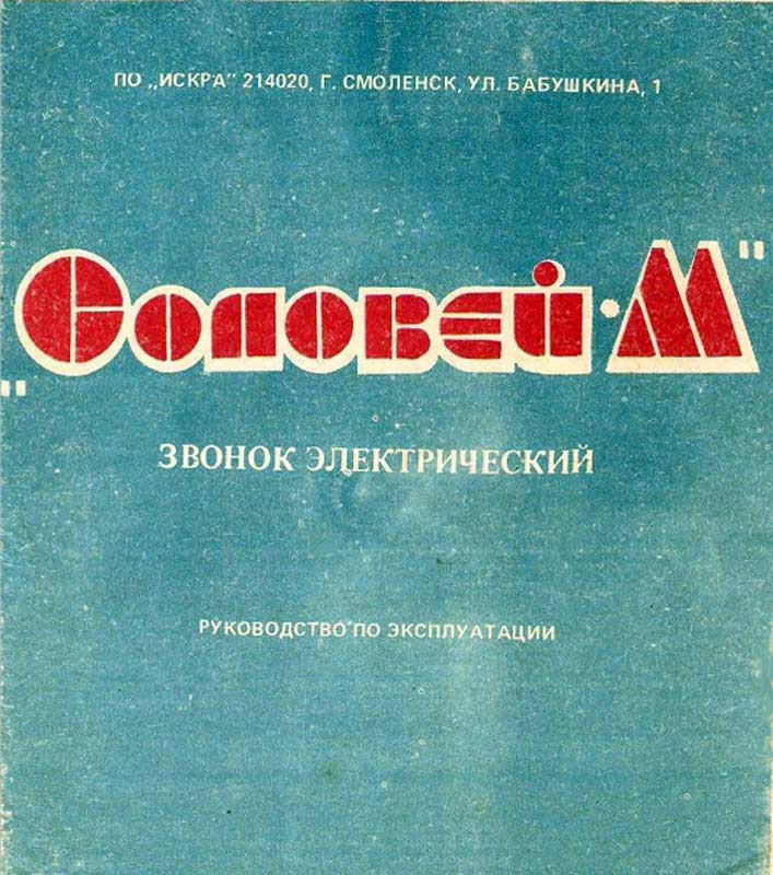 Звонок электрический Соловей-М предназначен для подачи звуковых сигналов в жилых помещениях. Звонок приближенно имитирует пение соловья. Звонок электрический бытовой *Соловей-М* выпускался с 1989 года Смоленским ПО *Искра*. Подробное описание звонка *Соловей-М* в его инструкции.