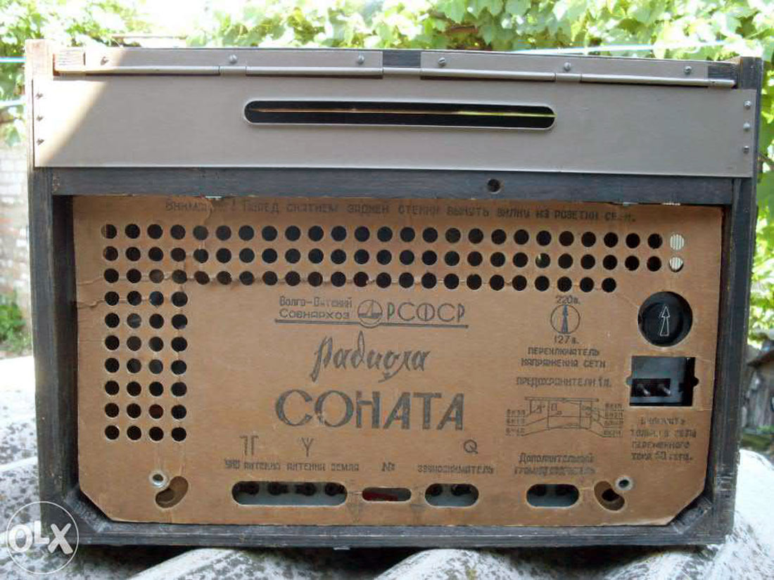Транзисторный радиоприёмник "Соната" с осени 1965 года выпускал Ленинградский завод "Радиоприбор". Приёмник имел несколько вариантов оформления. Он отличается от подобных моделей современным оформлением, качеством звучания, высокими параметрами. Диапазоны волн: ДВ - 150...408 кГц (2000...735 м), СВ - 525...1605 кГц (571,2...187,0 м), КВ-1 - 3,95...7,4 МГц (75...41 м), КВ-2 - 9,0...12,1 МГц (31...25 м). Максимальная чувствительность в диапазонах: ДВ - 1,0 мВ/м, СВ - 0,5 мВ/м, КВ - 50 мкВ. Реальная чувствительность 2,0 мВ/м, 1,0 мВ/м и 200 мкВ. Избирательность по соседнему каналу в диапазонах ДВ и СВ не менее 34 дБ. Избирательность по зеркальному каналу на ДВ - 32 дБ, СВ - 26 дБ, КВ - 12 дБ. ПЧ 465 кГц. Номинальная выходная мощность 150 мВт. Диапазон воспроизводимых частот - 200...4000 Гц. Приёмник имеет регулятор тембра ВЧ, обеспечивающий завал АЧХ на частоте 4 кГц - 12 дБ. Питание приёмника осуществляется от 2-х батарей КБСЛ-0,5. Размеры модели 252х143х68 мм. Масса 1,9 кг. Есть возможность подключения головного телефона или громкоговорителя, внешнего источника питания, антенны и заземления. Экспортные радиоприёмники имели КВ поддиапазоны от 16 до 50 метров. Основные модели «Соната» (портативный): Первый портативный транзисторный четырехдиапазонный (ДВ, СВ, КВ) радиоприемник 4 класса, который выпускался Ленинградским заводом «Радиоприбор» с осени 1965 года. Отличался современным дизайном и хорошим качеством звучания. Питание осуществлялось от двух батарей КБСЛ-0,5. «Соната-201» (портативный): Модернизированная версия, выпускавшаяся с 1972 года тем же заводом. Основные изменения коснулись электрической схемы (увеличение выходной мощности до 0,5 Вт) и конструкции (кнопочный переключатель диапазонов, большее число КВ поддиапазонов). «Соната РП-203» (стационарный): Стационарный транзисторный УКВ-ЧМ приемник, выпускавшийся Великолукским радиозаводом с 1991 года. Предназначался для приема трех заранее настроенных программ. «Соната РП-201» (стационарный): Модель 1993 года от Великолукского радиозавода, аналогичная РП-203, но без блока фиксированных настроек, только с плавной настройкой в УКВ-ЧМ диапазоне. «Соната» (ламповая радиола): Также существовала сетевая ламповая радиола «Соната», выпускавшаяся Горьковским заводом имени Ленина с 1962 года. Это было совершенно другое устройство, совмещенное с электропроигрывателем