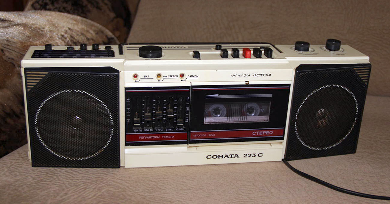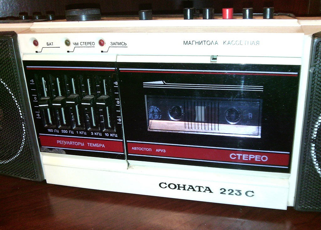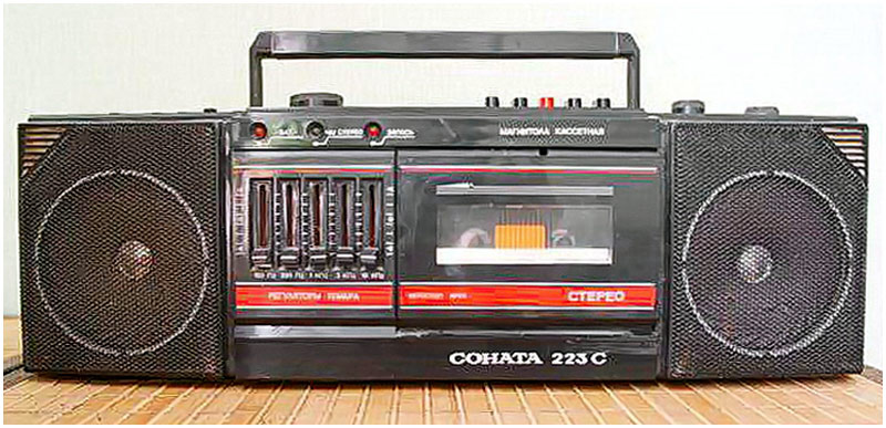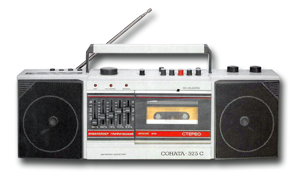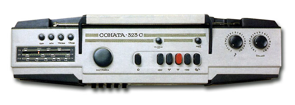Стереофоническая магнитола *Соната РМ-323-стерео* с начала 1989 года выпускало Великолукское ПО *Радиоприбор*. Портативная кассетная магнитола предназначена для приёма радиостанций в трёх диапазонах, ДВ, СВ и УКВ (стерео) и на запись фонограмм с собственного приёмника, двух встроенных электретных микрофонов в режиме стерео и внешних источников сигнала. Пятиполосный графический эквалайзер позволяет установить наилучшее качество воспроизведения фонограм. Для приёма используется внутренняя магнитная (ДВ, СВ) и выдвижная, регулируемая в пространстве пятиколенная телескопическая антенна (для УКВ). Номинальная выходная мощность 2х0,5 Вт. Диапазон рабочих частот тракта магнитофона на ЛВ - 63...10000 Гц. С 1991 года завод начал выпуск магнитолы *Соната РМ-223С*, которая кроме чисто коммерческого перевода её во 2-й класс сложности ничем не отличалась. А ещё с 1986 года выпускалась магнитола *Соната-323-стерео* во всём аналогичная вышеописанной.