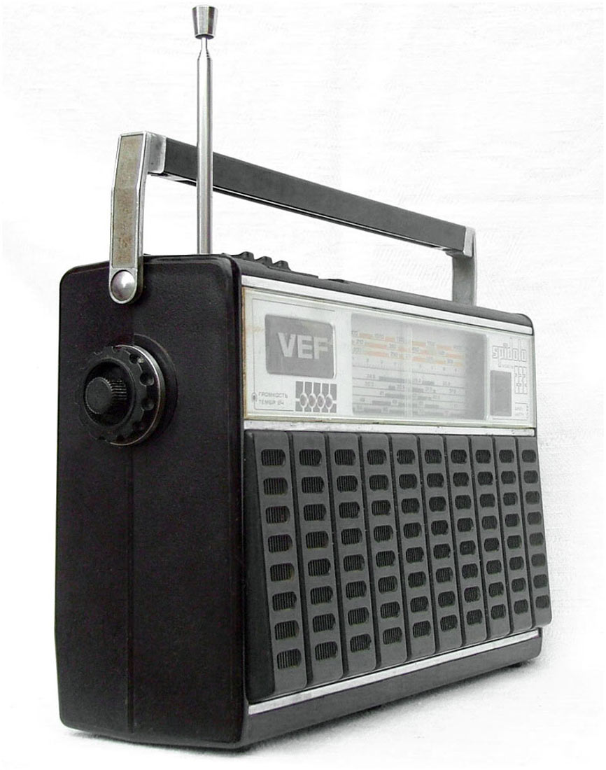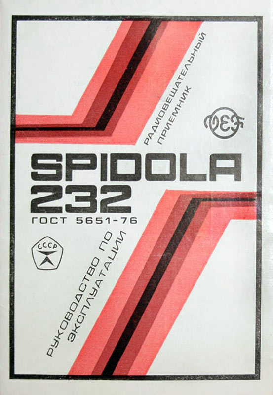 Портативный радиоприёмник *Спидола-232* с 1979 года выпускал Рижский Государственный электротехнический завод ВЭФ. Переносный транзисторный приёмник 2-го класса **Вэф-Спидола-232** рассчитан на приём радиостанций в диапазонах ДВ, СВ и КВ1...KB4. Приём ведется на внутренние магнитную и телескопическую антенны. В приёмнике имеются светодиодный индикатор настройки служащий и для контроля степени разряда батарей, подсветка шкалы, гнёзда головных телефонов, внешней антенны, магнитофона для записи и внешнего питания. Имеется раздельная регулировка тембра по НЧ и по ВЧ. Питание осуществляется от 6 элементов типа А-373 или сети переменного тока через внешний блок питания типа **БП-24**. Основные технические характеристики: Реальная чувствительность в диапазоне ДВ - 0,7 мВ/м, СВ - 0,4 мВ/м, KB - 0,08 мВ/м. Номинальная выходная мощность 0,4 Вт. Номинальный диапазон воспроизводимых громкоговорителем звуковых частот - 125...4000 Гц. Габариты радиоприёмника - 260х360х110 мм. Масса без батарей - 3,4 кг. Розничная цена - 120 рублей.