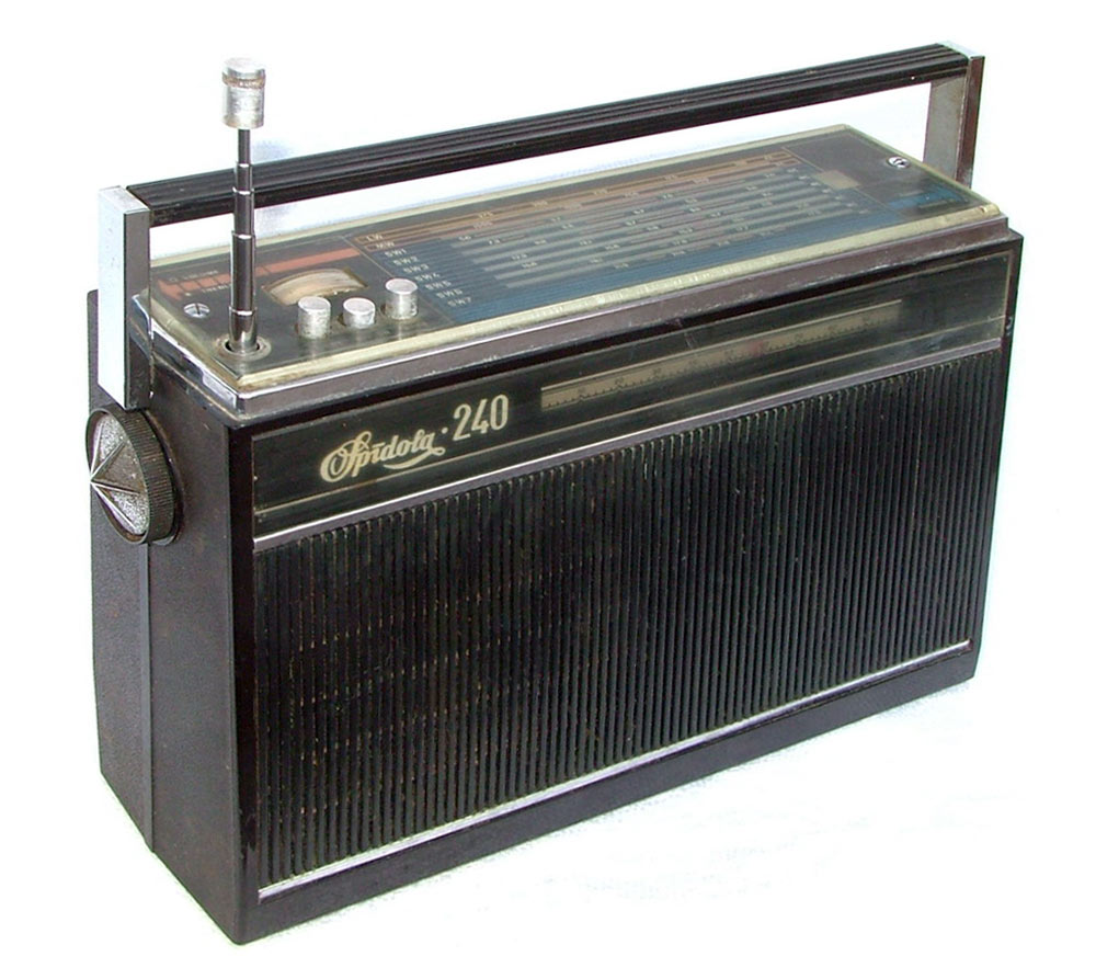 Портативный радиоприёмник *Спидола-240* с 1978 года выпускал Рижский радиозавод ВЭФ. Радиоприёмник **Спидола-240** выпускался на экспорт. Он предназначен для приёма радиовещательных станций в диапазонах ДВ, СВ и 7 поддиапазонах коротких волн. Для радиоприёма в ДВ, СВ диапазонах имеется магнитная антенна, для приёма в КВ поддиапазонах телескопическая. Имеется гнездо для внешней антенны; внешнего источника питания; гнездо головного телефона и внешнего громкоговорителя; гнездо включения магнитофона на запись. Имеется ступенчатое и плавное регулирование тембров по НЧ и ВЧ. Диапазоны частот: ДВ 150...408 кГц; СВ 525...1605 кГц; КВ поддиапазоны 2,0...5,0; 5,0...7,4; 9,5...9,775; 11.7...12,1; 15,1...15,45; 17.7...17,9; 21.45...21,75 МГц. Чувствительность в диапазоне ДВ - 600 мкВ/м СВ - 300 мкВ/м, KB 100...150 мкВ. Полоса воспроизводимых частот при работе на громкоговоритель 125..4000 Гц. Максимальная выходная мощность 700 мВт. Габариты радиоприёмника - 250х365х105 мм. Его вес 3,3 кг.