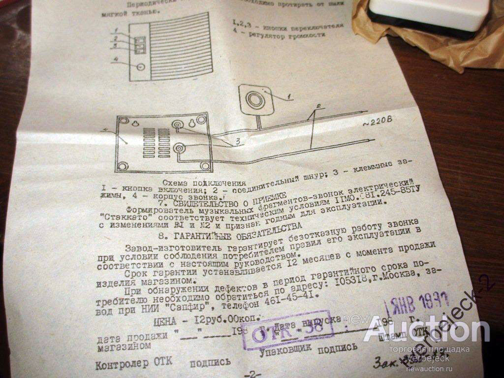 Звонок - формирователь музыкальных фрагментов *Стаккато* выпускал предположительно с 1991 года завод при Московском НИИ *Сапфир*.