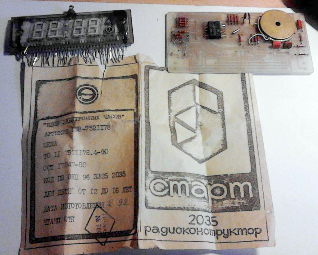 Радиоконструктор *Старт-2035* (Блок электронных часов) выпускался с 1990 года. РК предназначен для сборки действующих электронных часов.