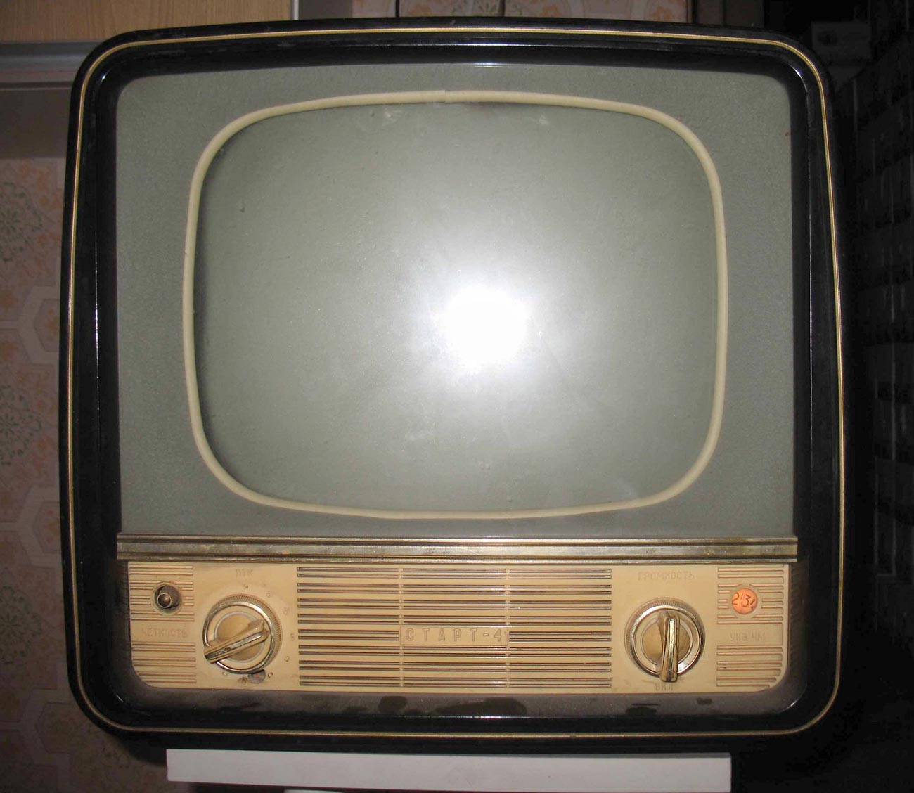 Телевизионный приёмник чёрно-белого изображения *Старт-4* выпускал с 1967 года Московский радиотехнический завод. Настольный ламповый телевизор третьего класса **Старт-4** создан на основе модернизированной модели **Старт-3**, практически схож с ней по оформлению и отличается только новыми ПЧ в связи с применением селектора каналов ПТК-5С и установкой более совершенного кинескопа, с алюминированным экраном 35ЛК6Б, который имеет повышенные светотехнические параметры, короткую горловину и не требует ионной ловушки. По электрической схеме, конструкции шасси и узлам аппараты имеют сходство. Потребляемая телевизором **Старт-4** от сети мощность при приёме телевидения около 140 Вт, а при приёме радиостанций 50 Вт. Габариты телевизора - 400х423х460 мм. Масса 22 кг. Цена 239 рублей. Подробнее о модели в документации.