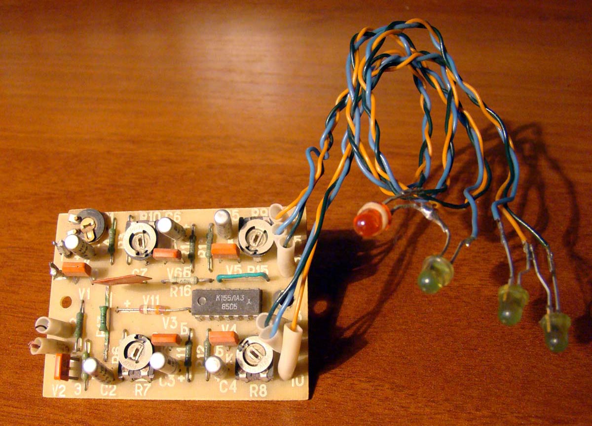 Радиоконструктор *Старт-7174* (Светодиодный индикатор уровня) с I-кв 1984 года выпускал Каменец-Подольский завод *Электроприбор*. РК позволяет собрать светодиодный индикатор уровня предназначенный для использования при конструировании и усовершенствовании любых магнитофонов или УНЧ. Индикатор позволяет регистрировать кратковременные пики сигнала, при которых стрелка обычного индикатора не успевает отклониться. Индикатор можно подсоединить к линейному выходу магнитофона или выходу УМ, что даёт возможность визуально контролировать и мощность. Диапазон рабочих частот 20...20000 Гц. Динамический диапазон 25 дБ. Размер платы 69x130x29 мм. Масса 120 гр.