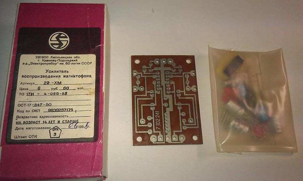 Радиоконструктор *Старт-7175* (Усилитель воспроизведения магнитофона) с 1984 года выпускал Каменец-Подольский завод *Электроприбор*. РК *предназначен для детей старшего школьного возраста и для радиолюбителей. Он позволяет собрать усилитель воспроизведения для стереофонического магнитофона, который предназначен для частотной коррекции и усиления сигнала поступающего с воспроизводящей головки до величины, достаточной для подачи на линейный вход усилителя мощности низкой частоты. Усилитель можно применить при изготовлении и модернизации магнитофонов самых различных классов. С применением усилителя можно собрать и магнитофон-проигрыватель. Технические параметры: Диапазон частот звука на скорости 19,05 см/с - 40...18000 Гц. Коэффициент нелинейных искажений 0,2 %. Номинальное выходное напряжение на частоте 1 кГц при напряжении на входе 1 мВ - 250 мВ. Уровень шумов -56 дБ. Напряжение питания 12...18 В. Габариты платы - 40x80х130 мм. Масса 150 г.